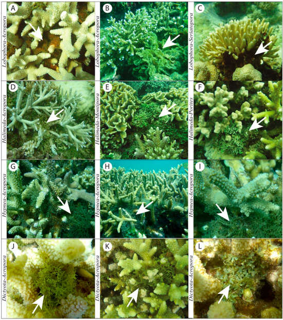 25. Bennett, S.; Vergés, A.; Bellwood, D. Branching coral as a macroalgal refuge in a marginal coral reef system. Coral Reefs 2010, 29, 471–480. [Google Scholar] [CrossRef]