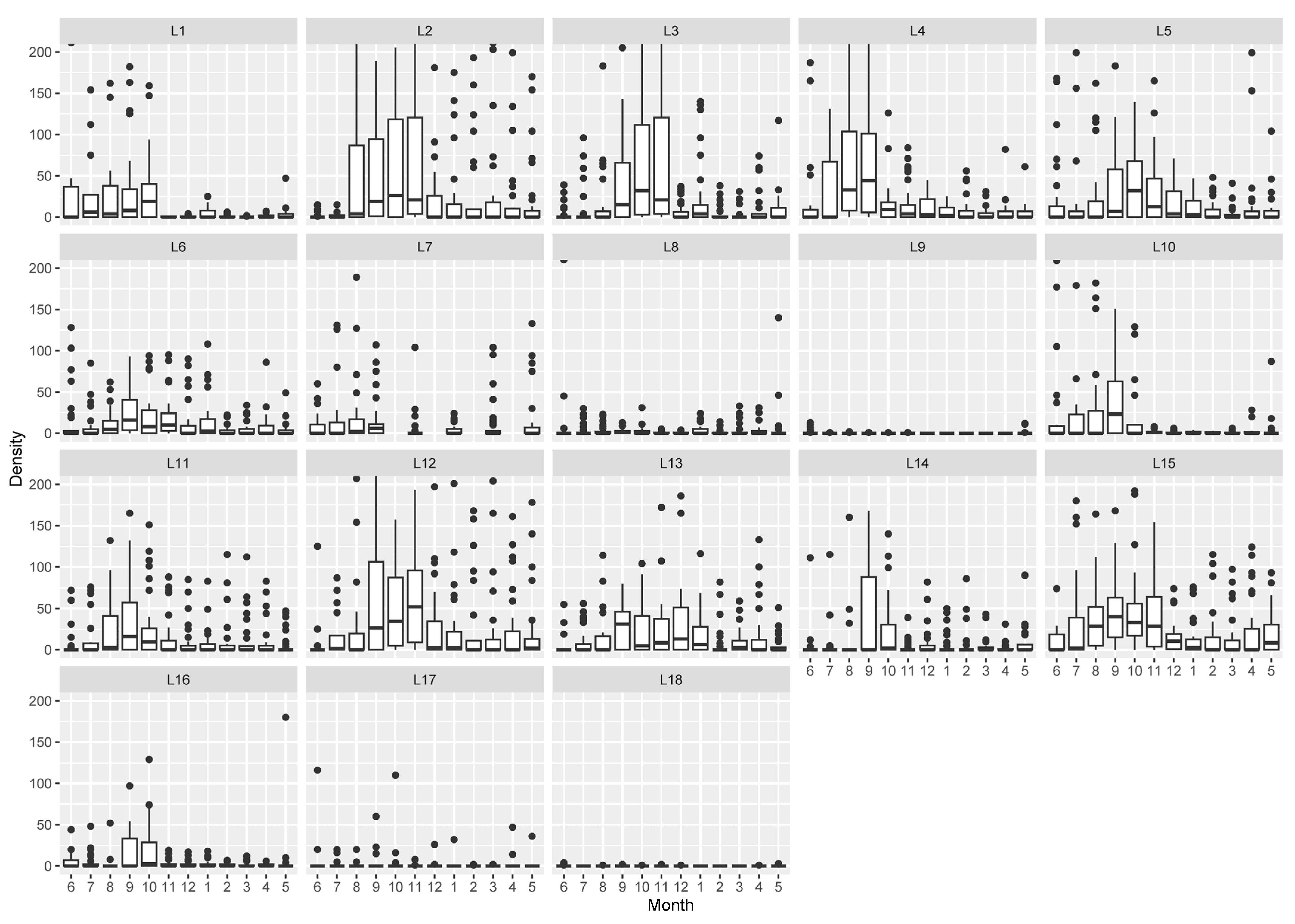 2.3.2. Descriptive Analysis of Cockle Population Dynamics