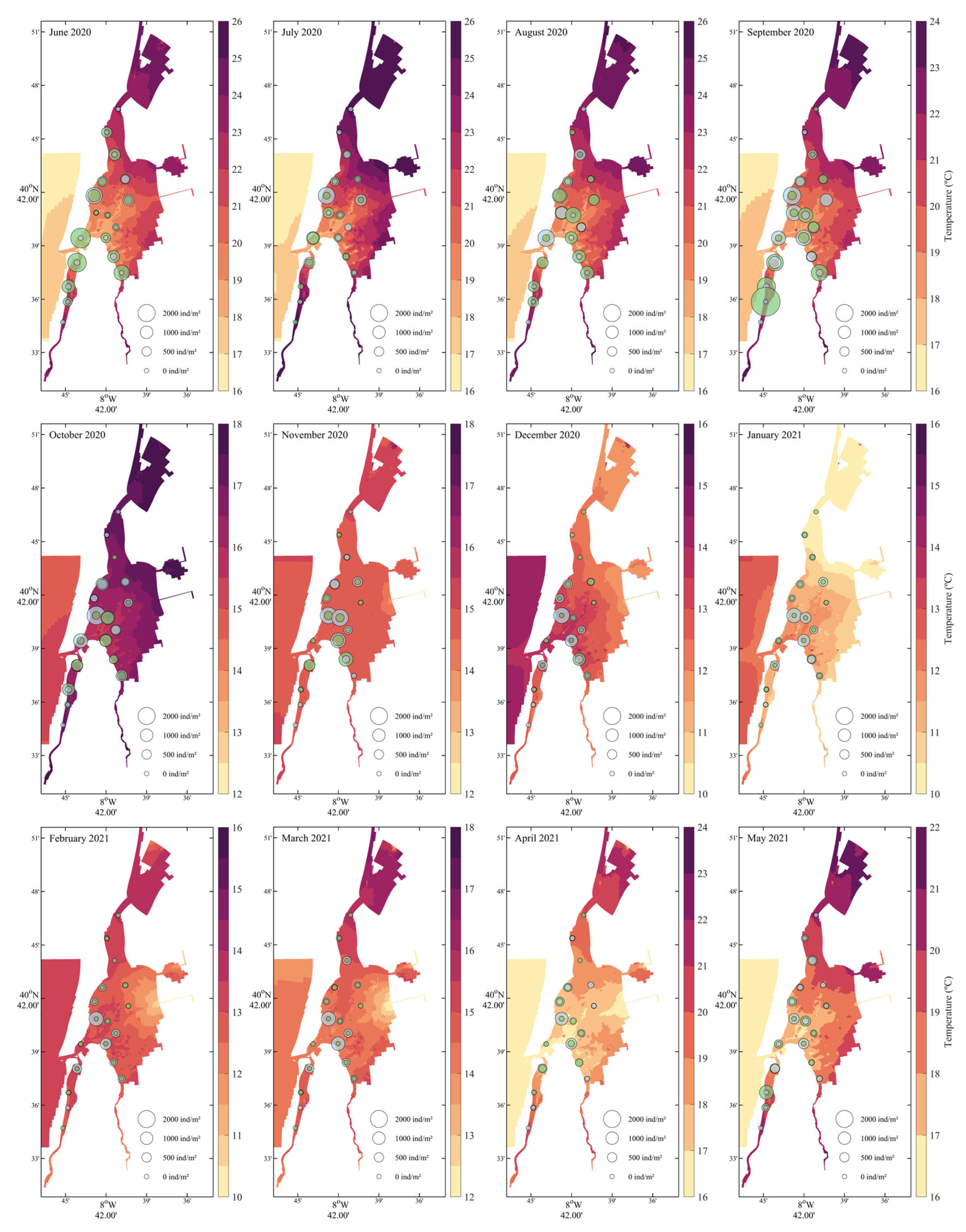 - Matos, F.L.; Vaz, N.; Picado, A.; Dias, J.M.; Maia, F.; Gaspar, M.B.; Magalhães, L. Assessment of Habitat Suitability for Common Cockles in the Ria the Aveiro Lagoon Under Average and Projected Environmental Conditions. Estuaries Coasts 2023, 46, 512–525. [Google Scholar] [CrossRef]