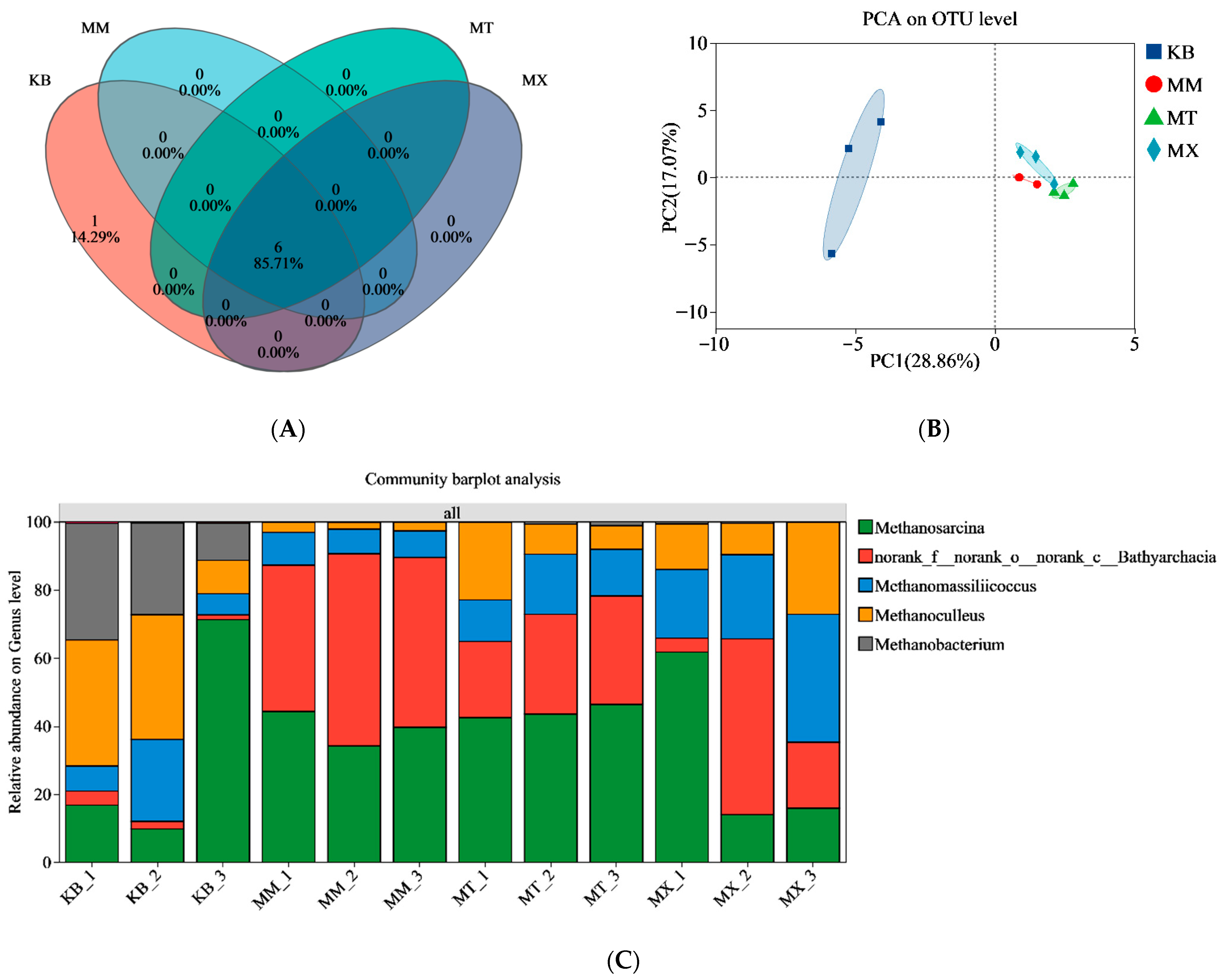 Methanosarcina remained consistent across groups, which may be attributed to its high metabolic versatility [