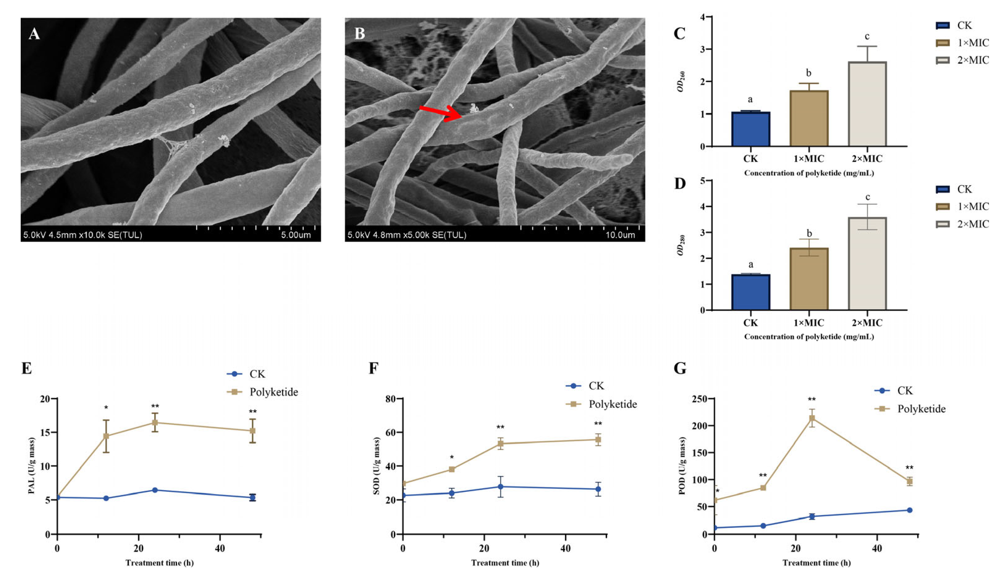 APA StyleSun, M., Du, W., Zhang, J., Xu, Y., Wang, Z., Zhou, L., Yan, G., & Zhang, S. (2025). Isolation and Identification of Antifungal Polyketones from Bacillus velezensis DJ1 and Their Biocontrol Potential Against Corn Stalk Rot. Biology, 14(10), 1436. https://doi.org/10.3390/biology14101436