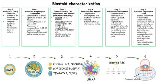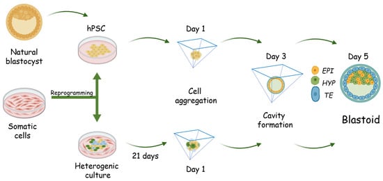 - Kagawa, H.; Javali, A.; Khoei, H.H.; Sommer, T.M.; Sestini, G.; Novatchkova, M.; Scholte op Reimer, Y.; Castel, G.; Bruneau, A.; Maenhoudt, N.; et al. Human Blastoids Model Blastocyst Development and Implantation. Nature 2022, 601, 600–605. [Google Scholar] [CrossRef]