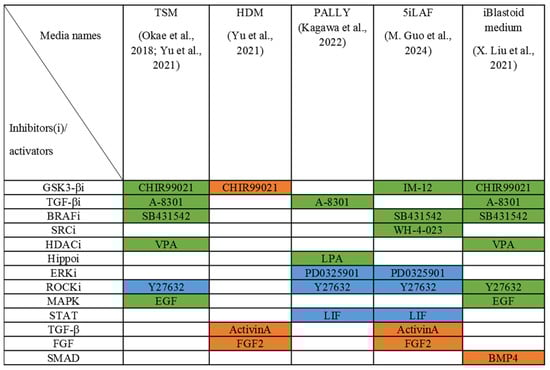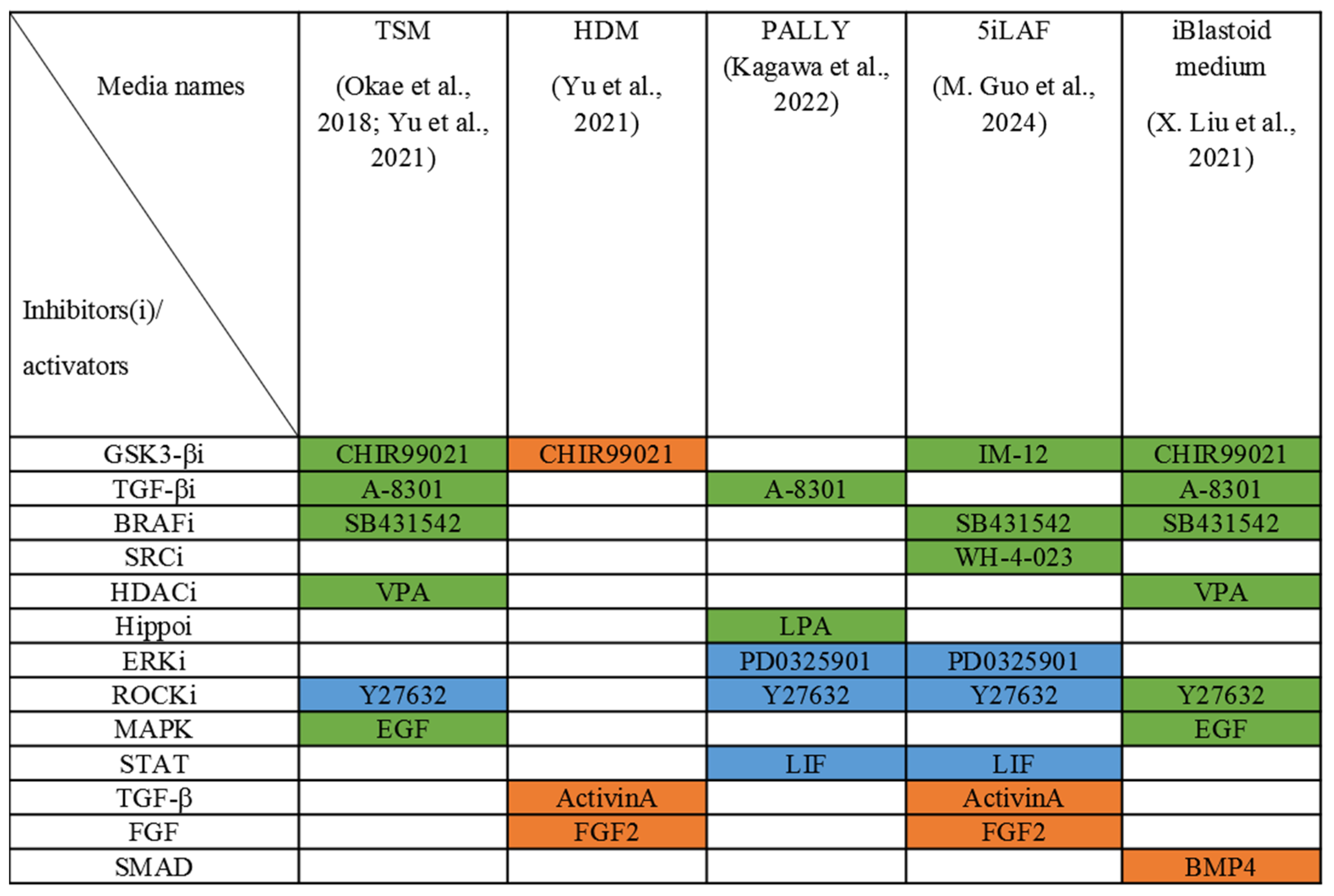 | 5iLAF | 5 inhibitors + LIF + Activin A + FGF2 |