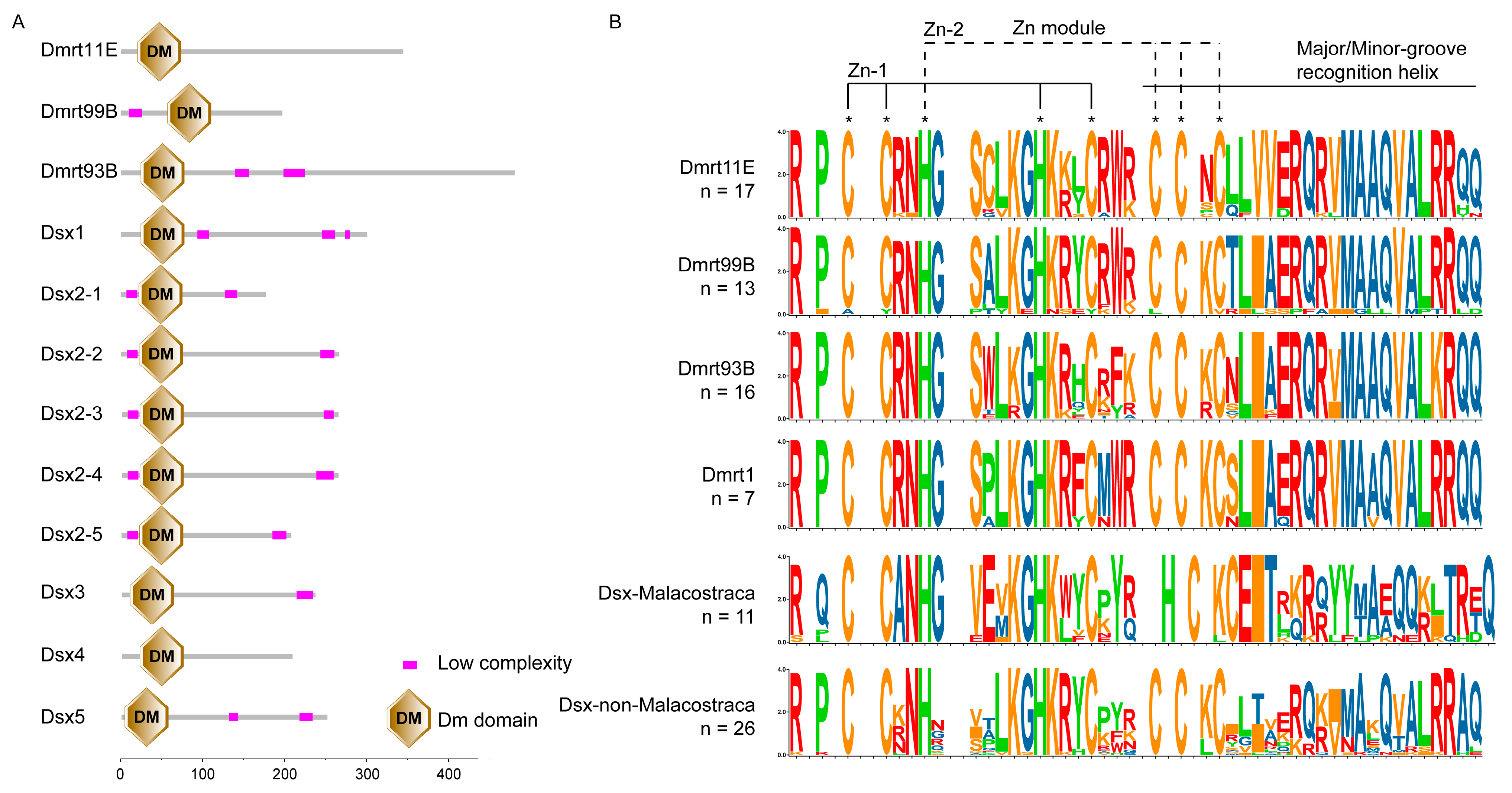 - Panara, V.; Budd, G.E.; Janssen, R. Phylogenetic analysis and embryonic expression of panarthropod Dmrt genes. Front. Zool. 2019, 16, 23. [Google Scholar] [CrossRef]