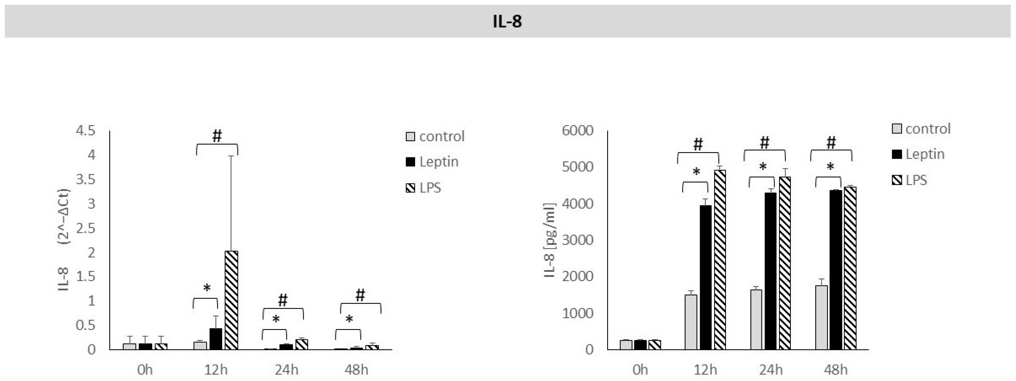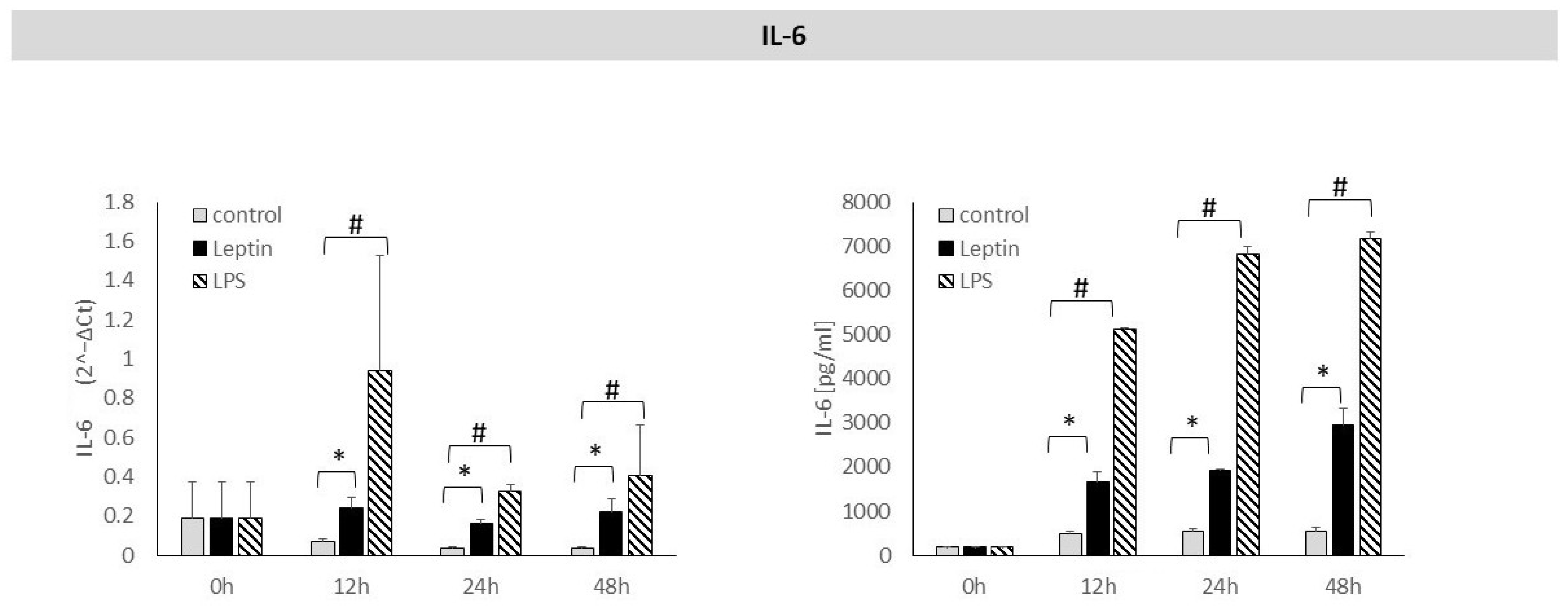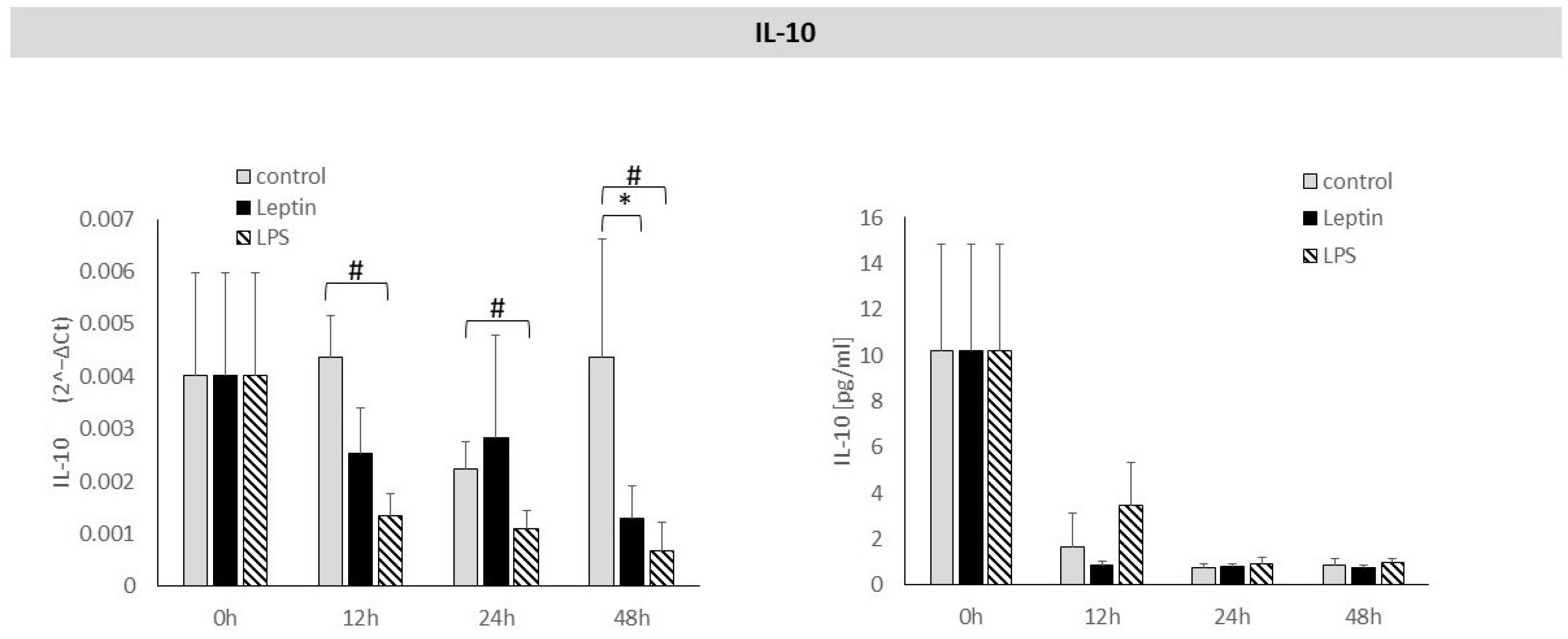 - Hoffmann, A.; Ebert, T.; Klöting, N.; Kolb, M.; Gericke, M.; Jeromin, F.; Jessnitzer, B.; Lössner, U.; Burkhardt, R.; Stumvoll, M. Leptin decreases circulating inflammatory IL-6 and MCP-1 in mice. BioFactors 2019, 45, 43–48. [Google Scholar] [CrossRef]