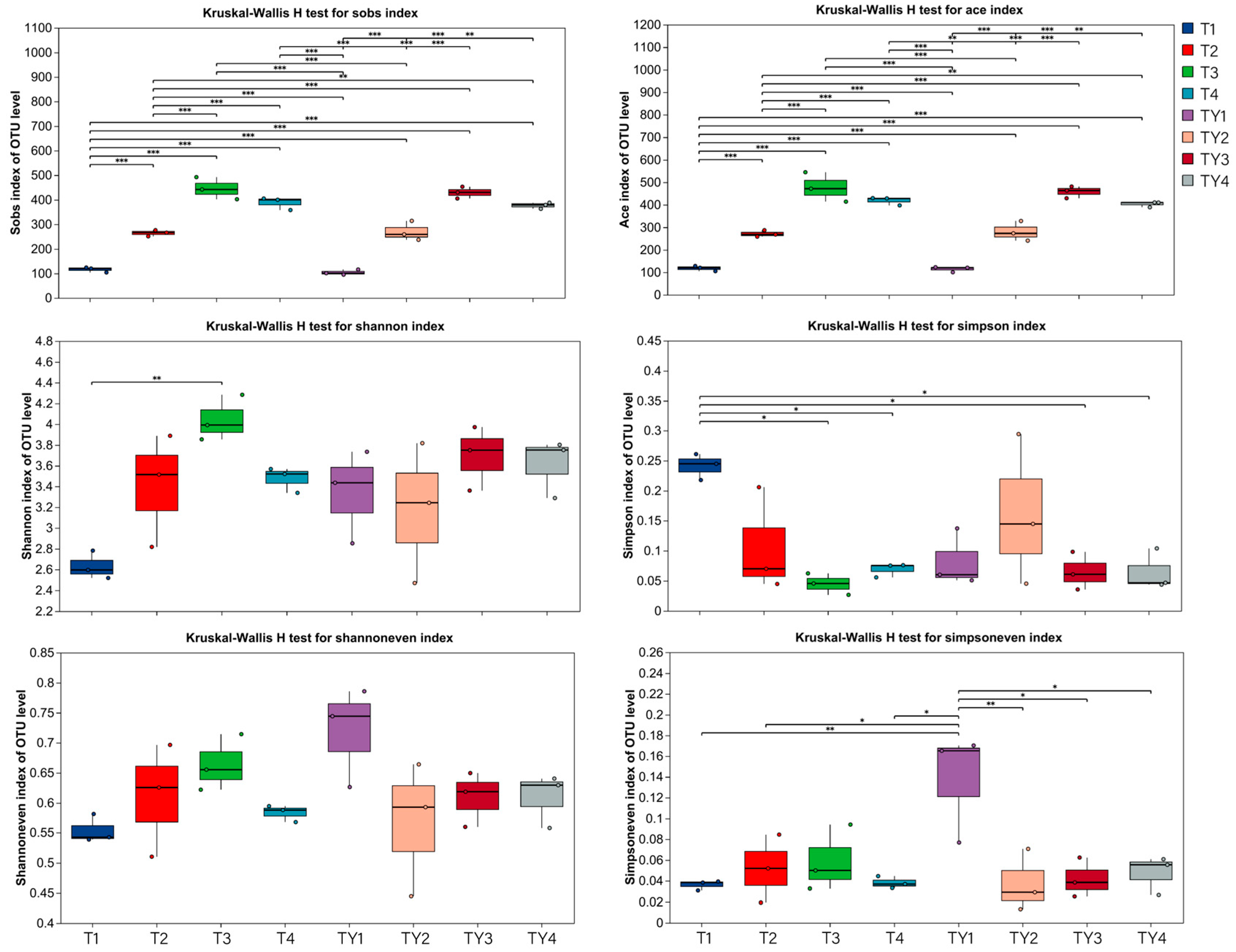 3.3.1. Alpha Diversity Analysis of Different Comparison Groups