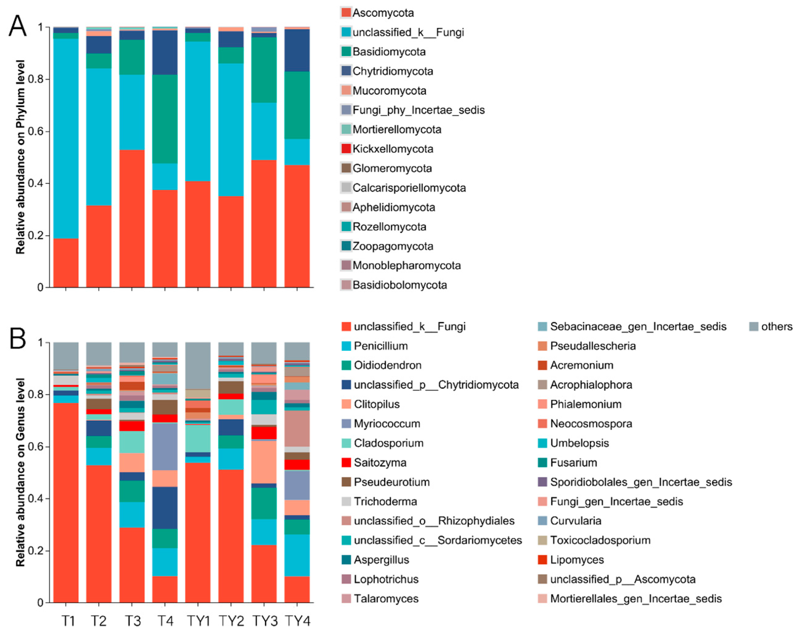 - Liu, S.; Xiong, C.; Lin, L.; Keyhani, N.O.; Zhu, M.; Zhao, Z.; Zhang, W.; Yang, C.; Su, H.; Liu, P. Assessing the structure and diversity of fungal community in plant soil under different climatic and vegetation conditions. Front. Microbiol. 2023, 14, 1288066. [Google Scholar] [CrossRef]