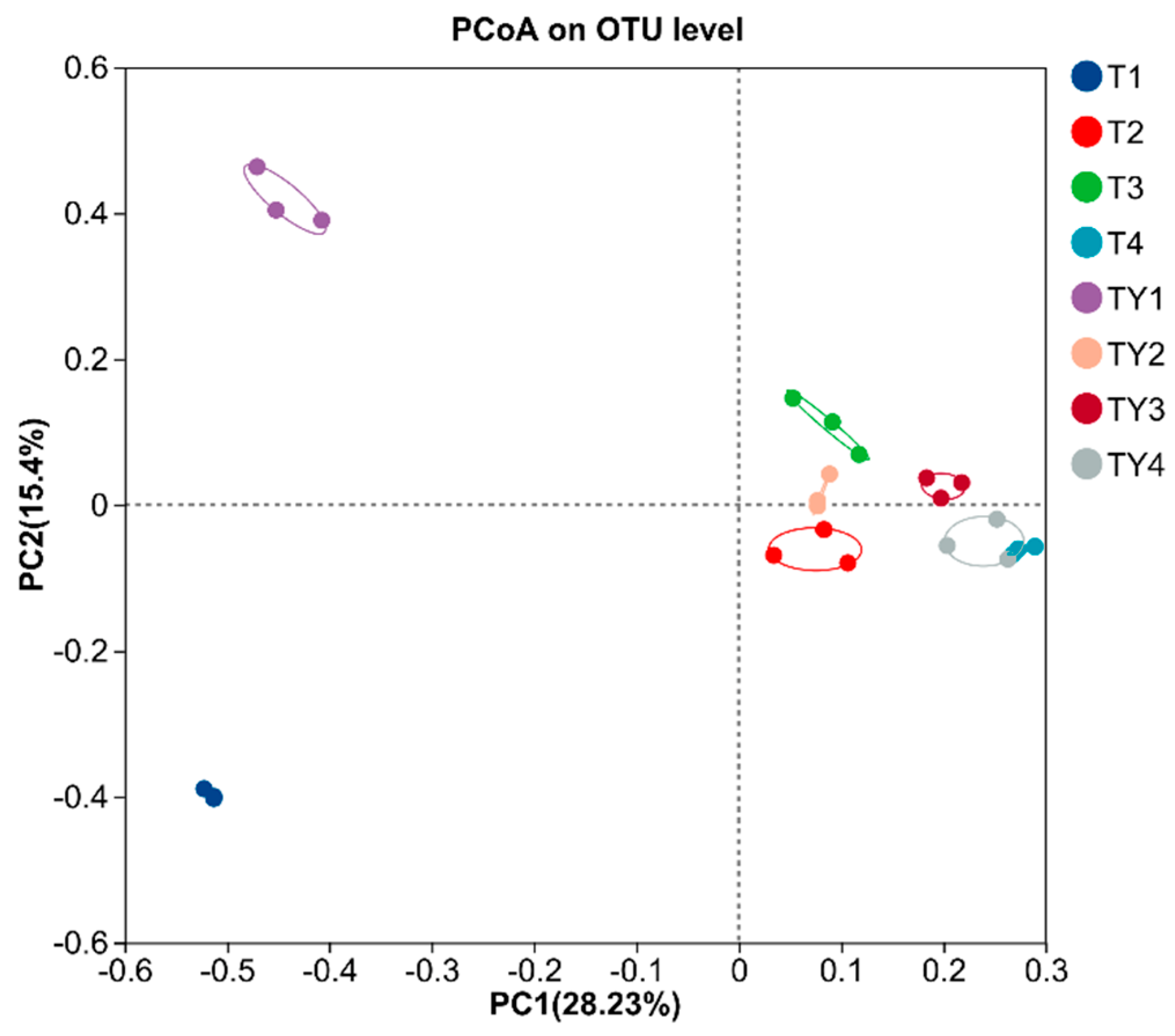 3.4.2. Analysis of Community Composition of Different Non-Salt Treatments