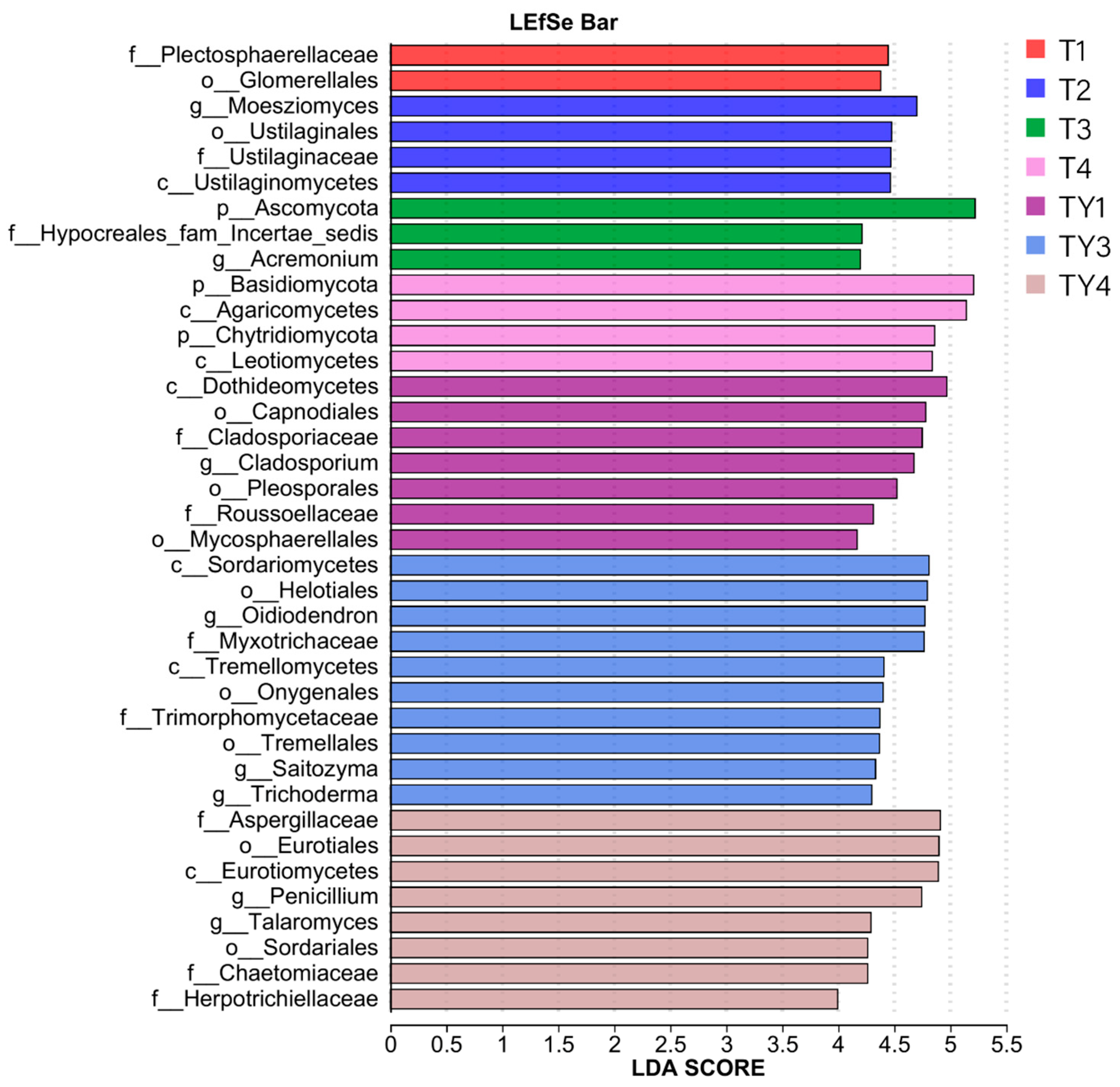 3.6. Lefse Multi-Level Species Difference Discriminant Analysis