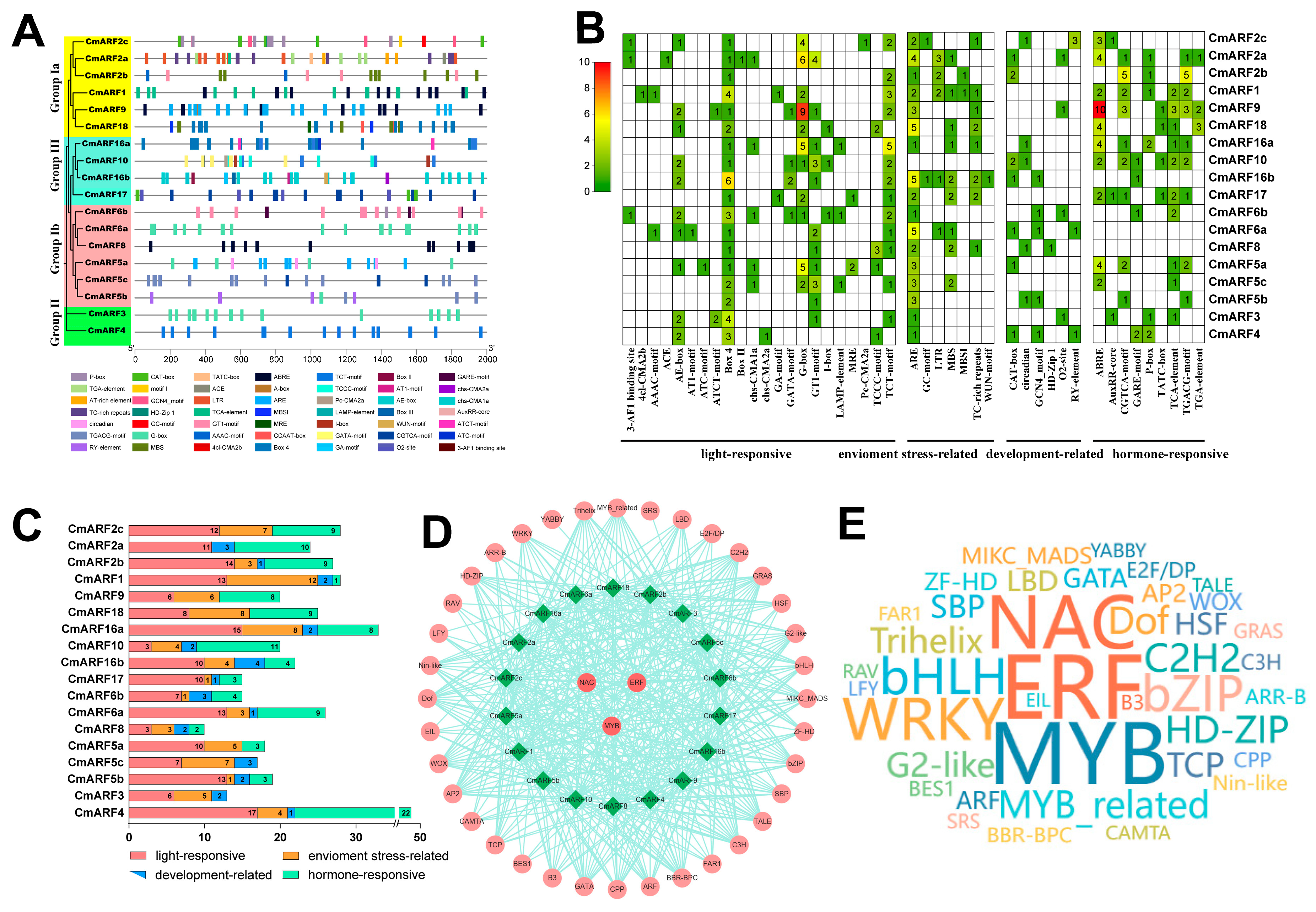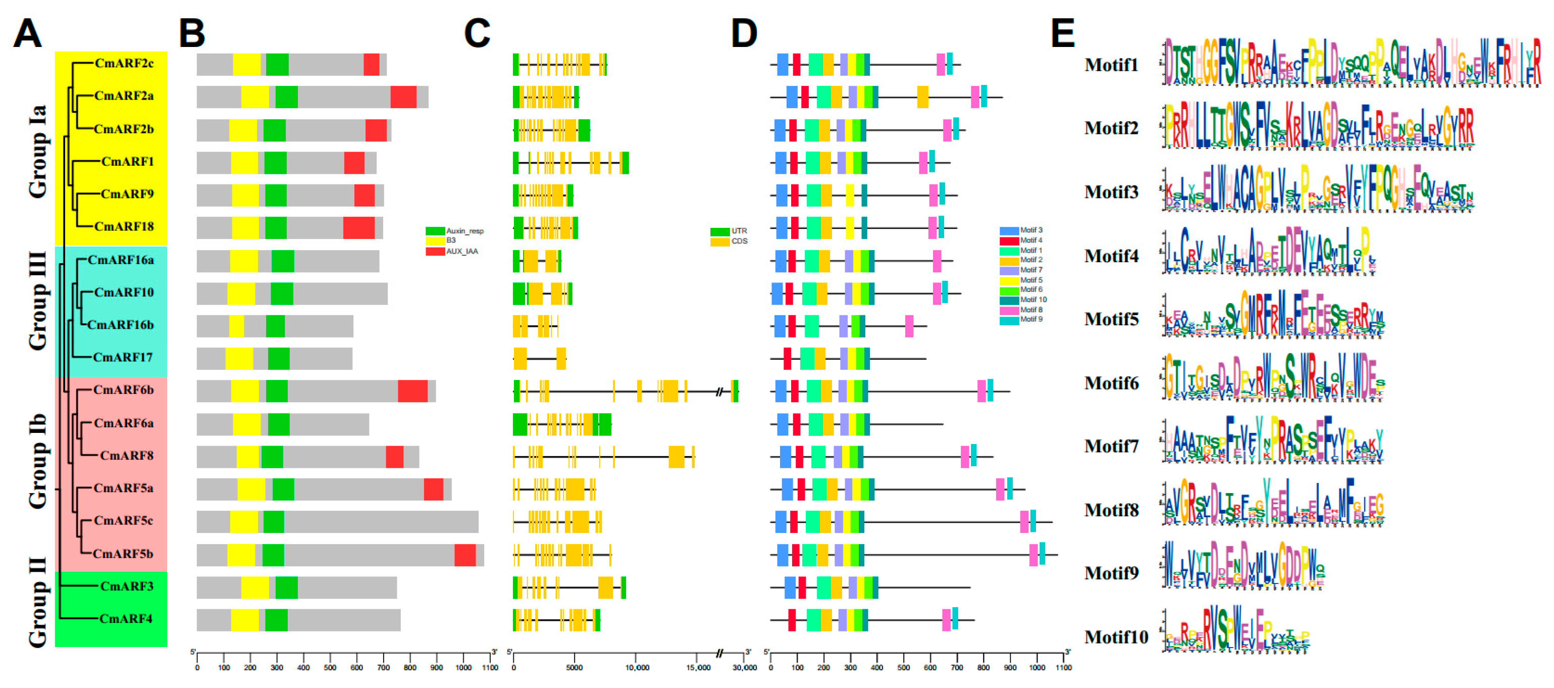 3.1. Identification and Phylogenetic Analysis of the CmARFs
