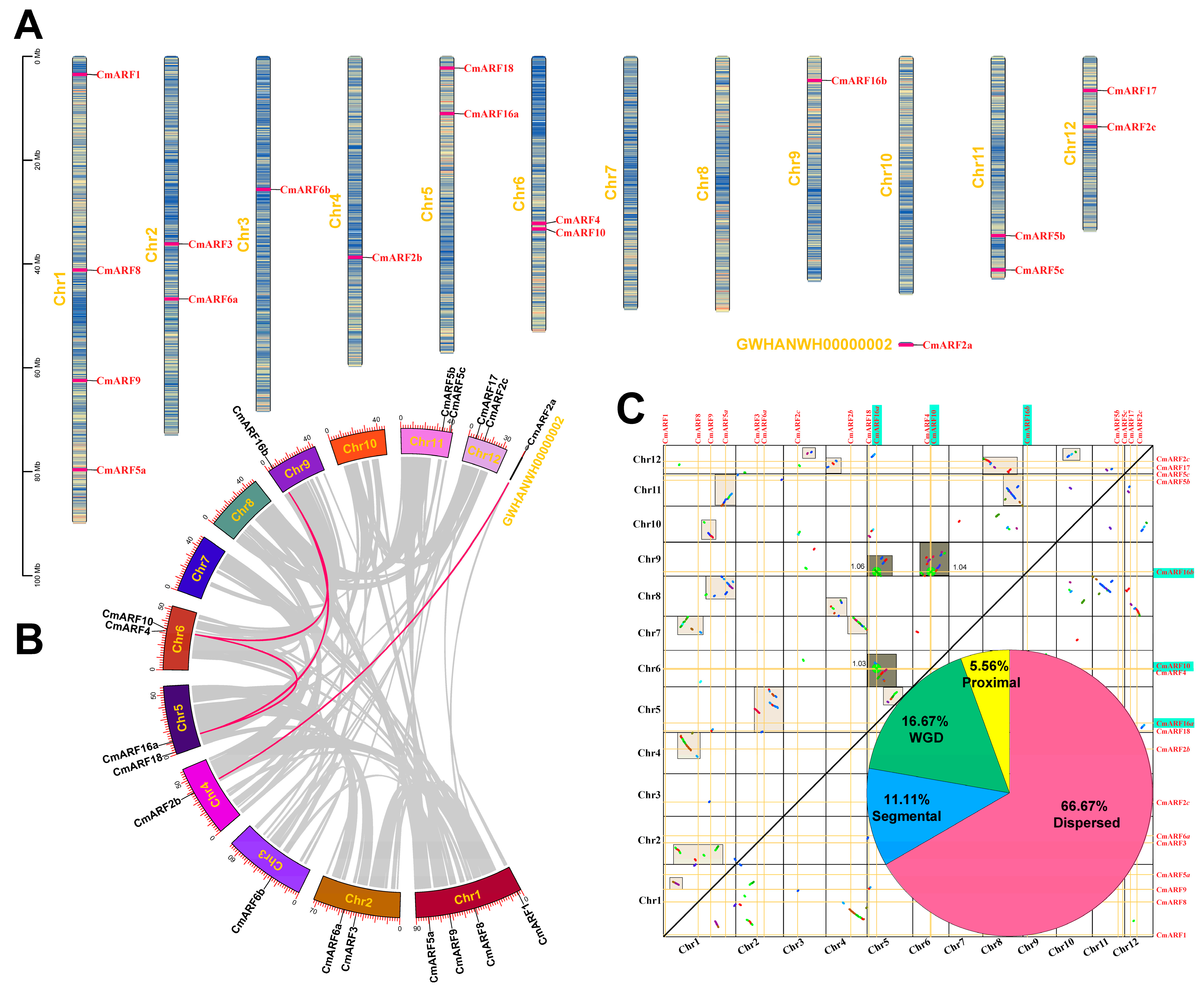 3.3. Chromosomal Location and Duplication Type Analysis of CmARFs