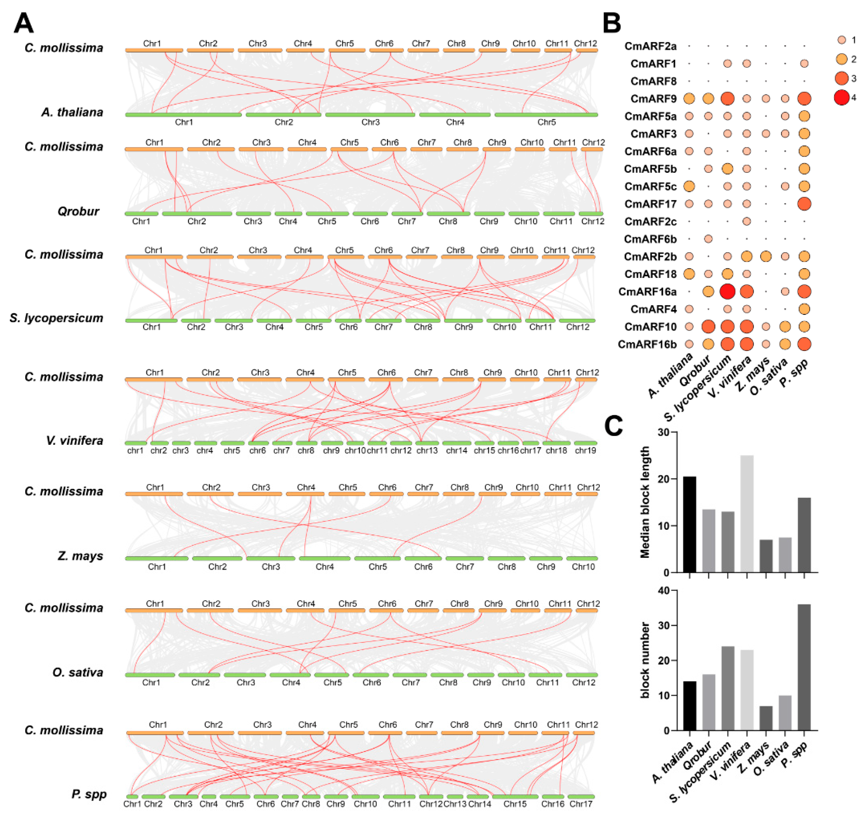 3.4. Collinear Analysis of ARFs in Several Plant Species