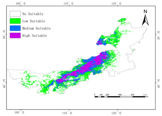 Under current climate conditions, G. daurica’s suitable habitat in Inner Mongolia encompasses approximately 531,300 km2, or 44.9% of the region: