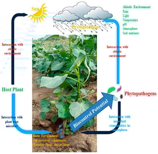 Some of the plant-disease-resistance characteristics selected are related to metabolized crop modifications, while others are products of interactions that promote biological control activities carried out by the diversity of microbes inhabiting the plant or rhizosphere soil. Even though the reproduction process has been flourishing among these beneficial microbes, resistance abilities arise within a specific time after a new generation of microbes has been produced as a result of replication. The circumstances are linked to a variety of processes, like the coevolution of phytopathogens that possess virulence traits in plants. Some methods depend on the generation of crop varieties having phytopathogen resistance traits, which reveal controversial effects upon phytopathogen invasion. The question to investigate here is how the evolution of these resistance plants is different from plants of the same species that have no resistance attributes against phytopathogens. The answer is a result of the coevolution of antitoxin-producing microbes that are beneficial to the plants and live in the plant environment as either rhizosphere organisms or endophytes (i.e., organisms living within the plant tissue) [28]. The biocontrol activities of these organisms makes them stand out against spoilage organisms and contribute to plant growth, and evolution results in changes in the plant species from being without antitoxin effects to being plants with antitoxin effects [82]. Therefore, a new generation of plants produces a new generation of fruits that develop faster, avoid spoilage, and maintain shelf life during germination, harvest, and the post-harvest phases [83]. The process of applying unrelated microbes to agricultural land to inhibit or eradicate the existence of phytopathogens can assist in monocultural farming. Utilizing plant breeding methods with technology involving beneficial microbe formulation (biofertilizers, biopesticides, biostimulants, etc.) would help induce immune responses in plants against pathogens [84].