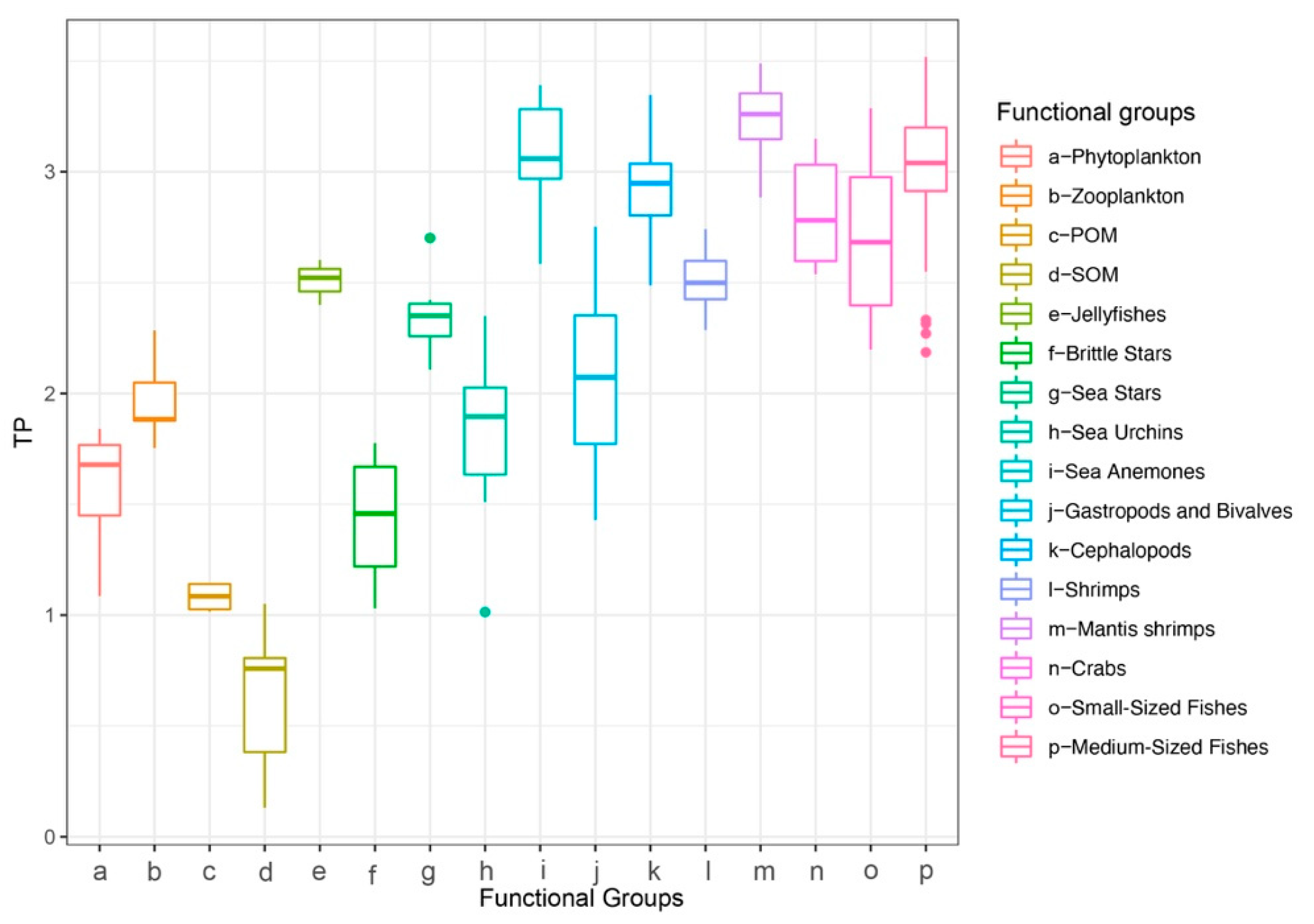 | Label | Functional Groups | Sample Size (n) | Mean of TP | SD of TP | TL |