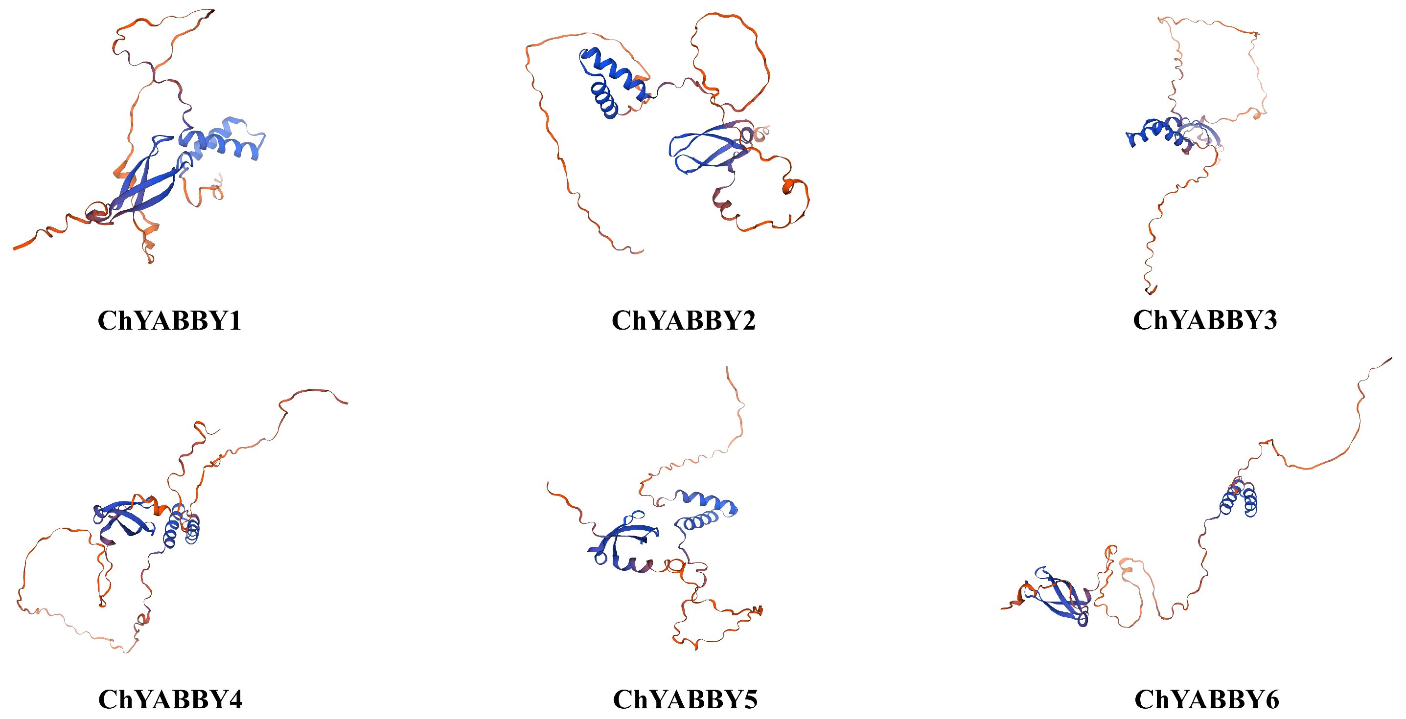 3.2. Structural Analysis of ChYABBY Protein and ChYABBY Gene