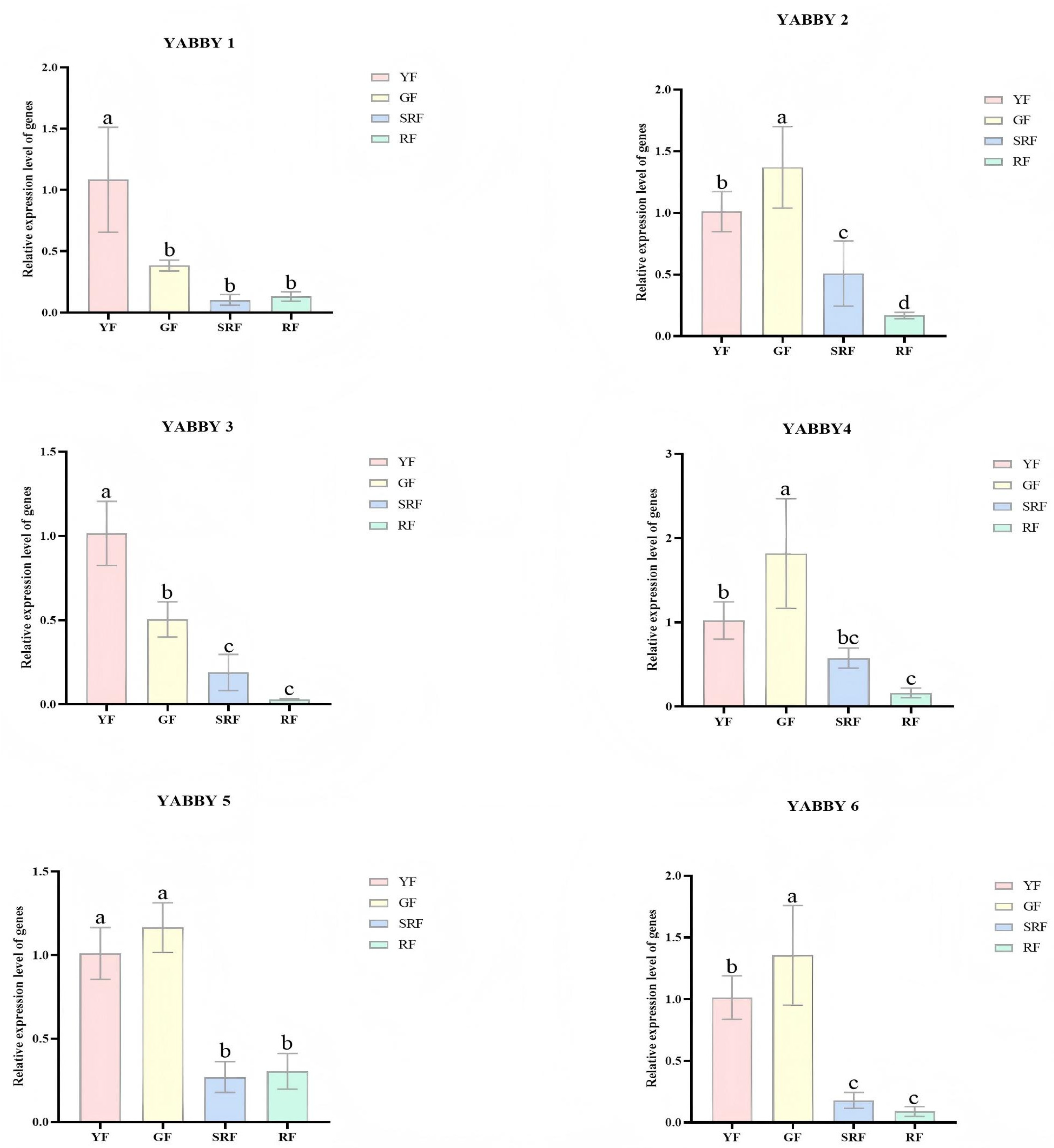 - Wang, W.; Ma, J.; Liu, H.; Wang, Z.; Nan, R.; Zhong, T.; Sun, M.; Wang, S.; Yao, Y.; Sun, F.; et al. Genome-wide analysis of the switchgrass YABBY family and functional characterization of PvYABBY14 in response to ABA and GA stress in Arabidopsis. BMC Plant Biol. 2024, 24, 114. [Google Scholar] [CrossRef]