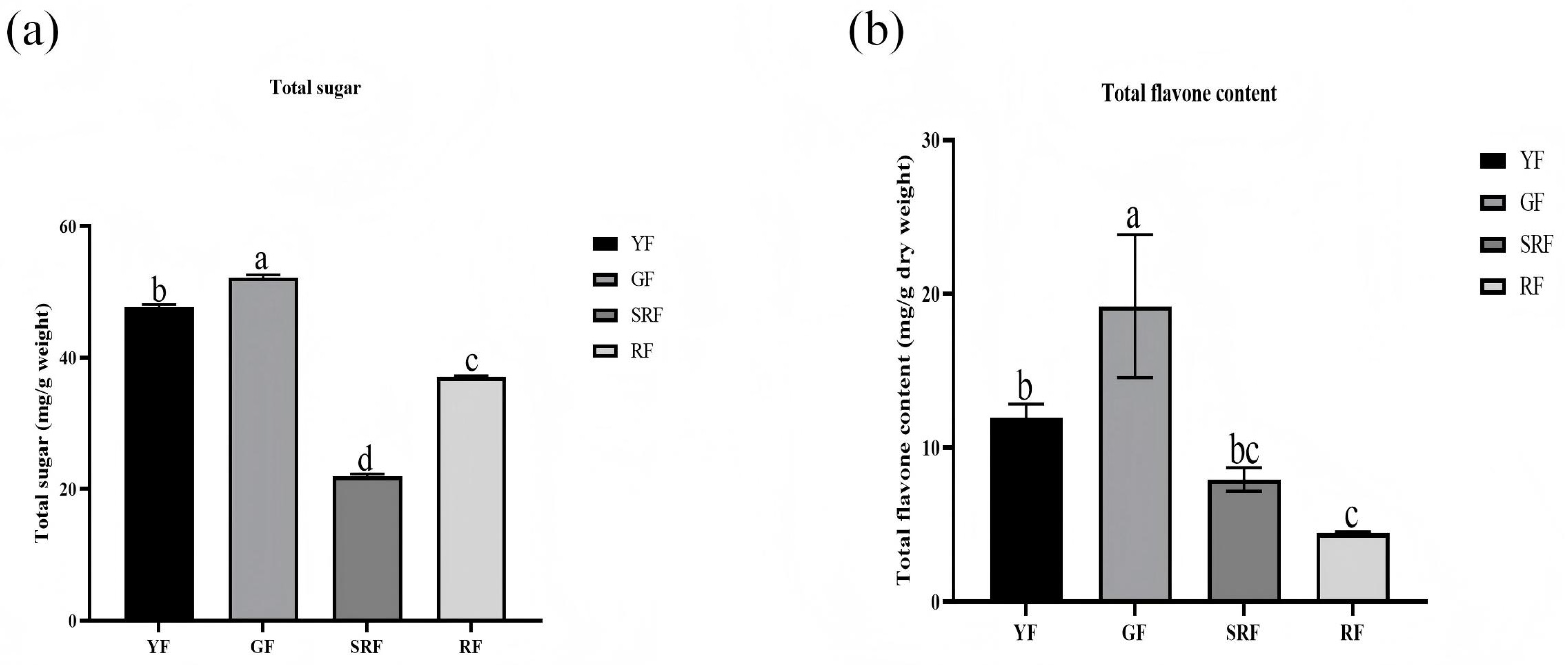 3.9. Determination of Total Sugar and Total Flavone Content