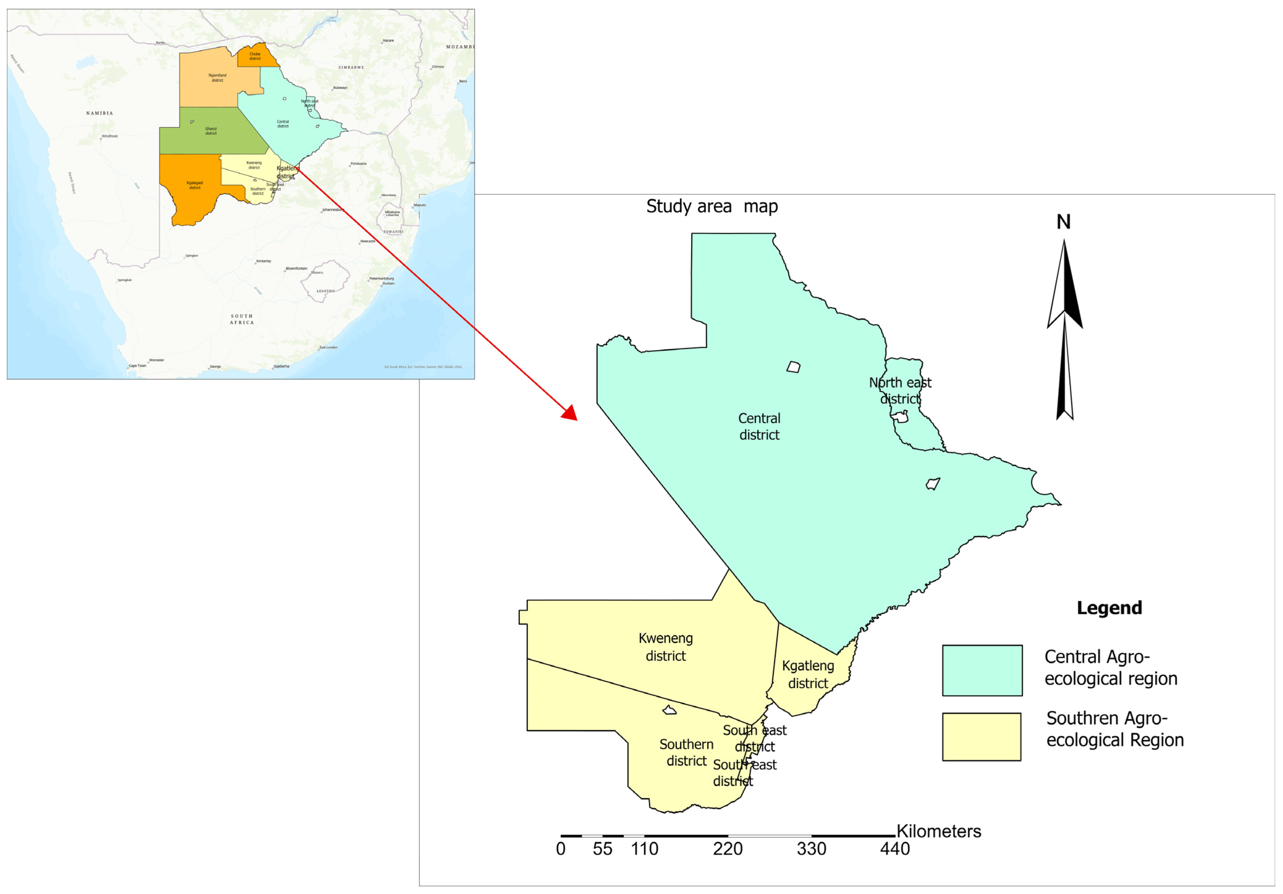 - Bolowe, M.A.; Thutwa, K.; Monau, P.I.; Malejane, C.; Kgwatalala, P.M. Production Characteristics and Management Practices of Indigenous Tswana Sheep in Southern Districts of Botswana. Animals 2022, 12, 830. [Google Scholar] [CrossRef] [PubMed]