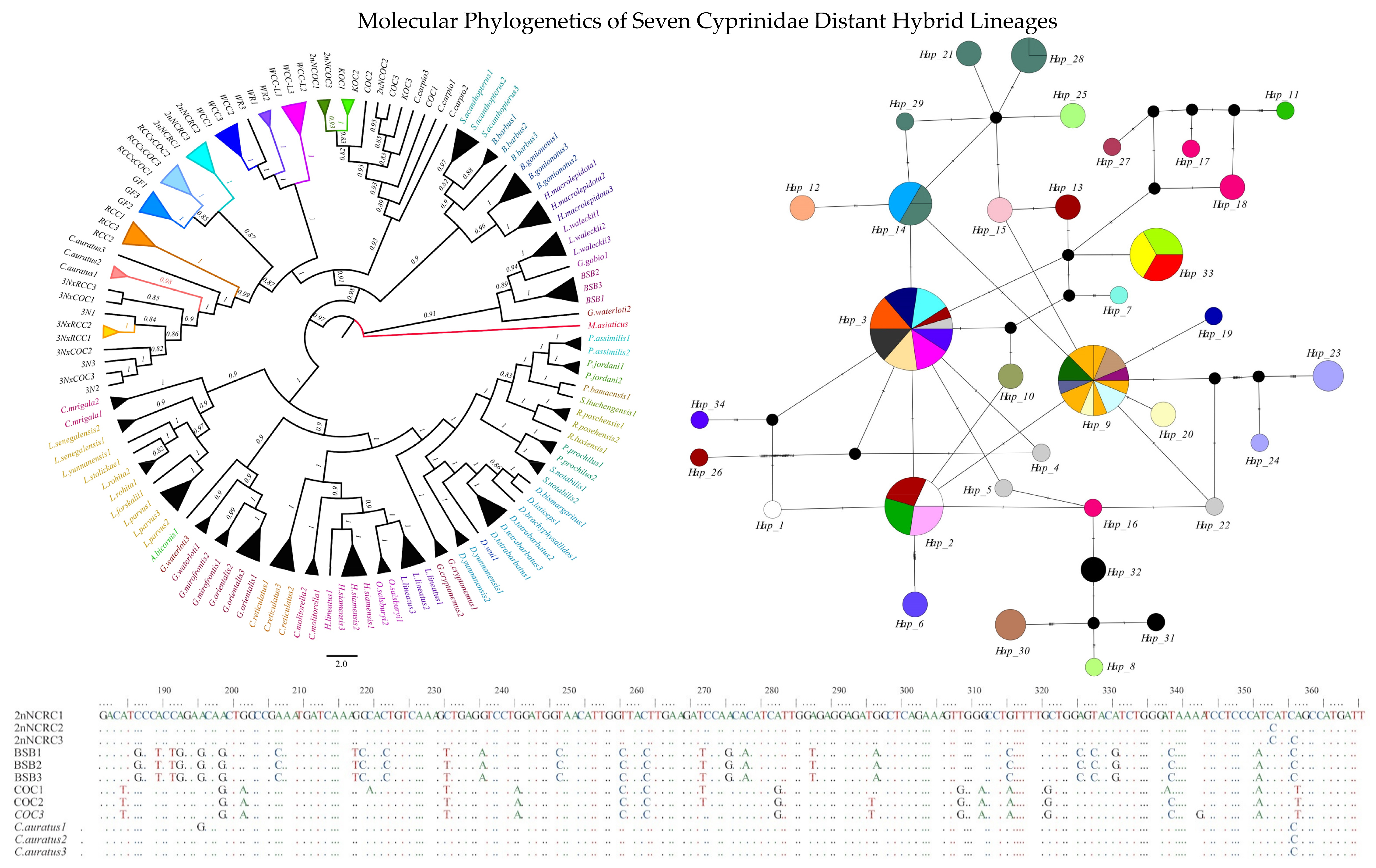 4.1. Distant Hybridization in Cyprinidae: Mitochondrial Conservation and Nuclear Gene Co-Adaptation