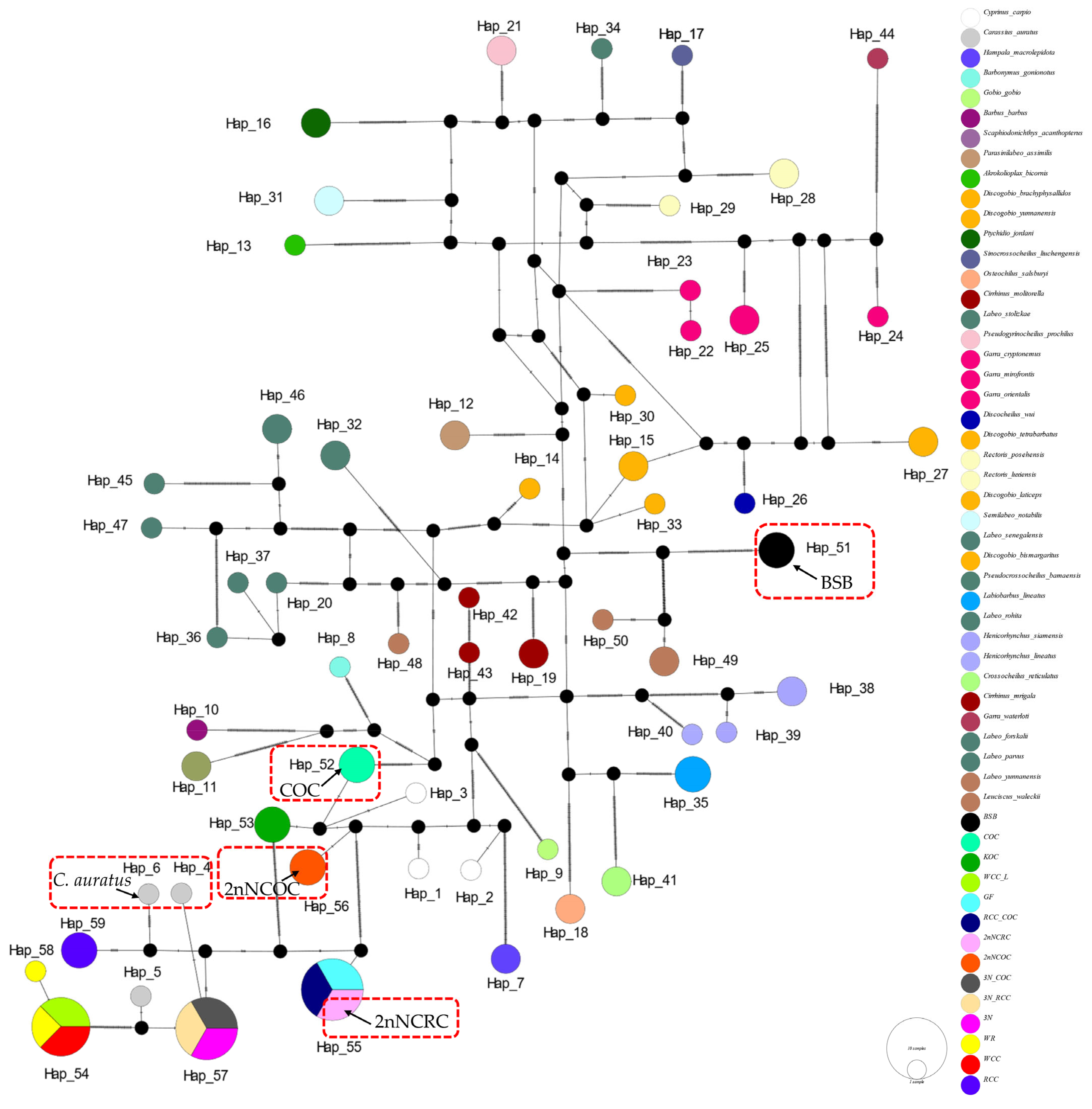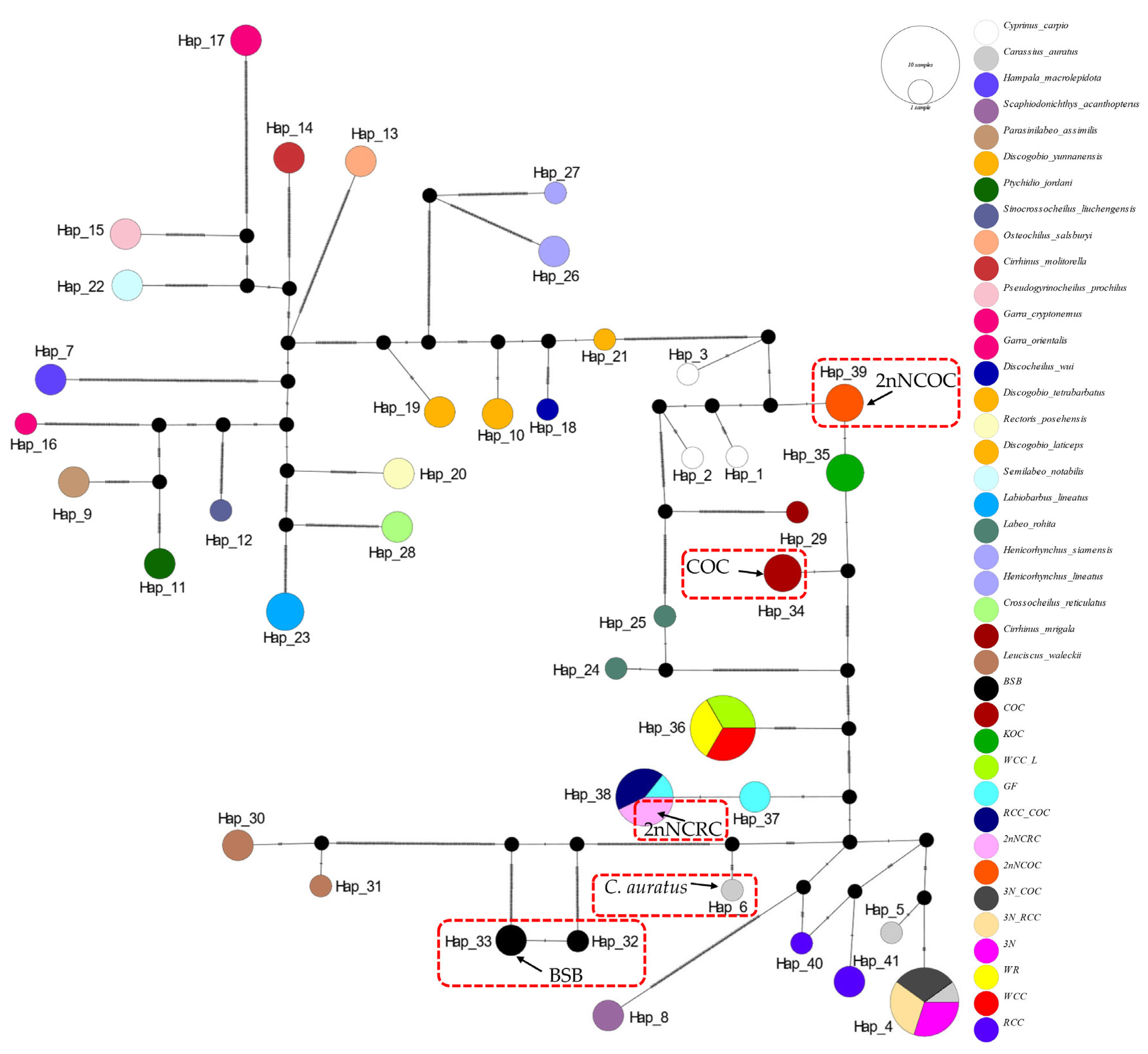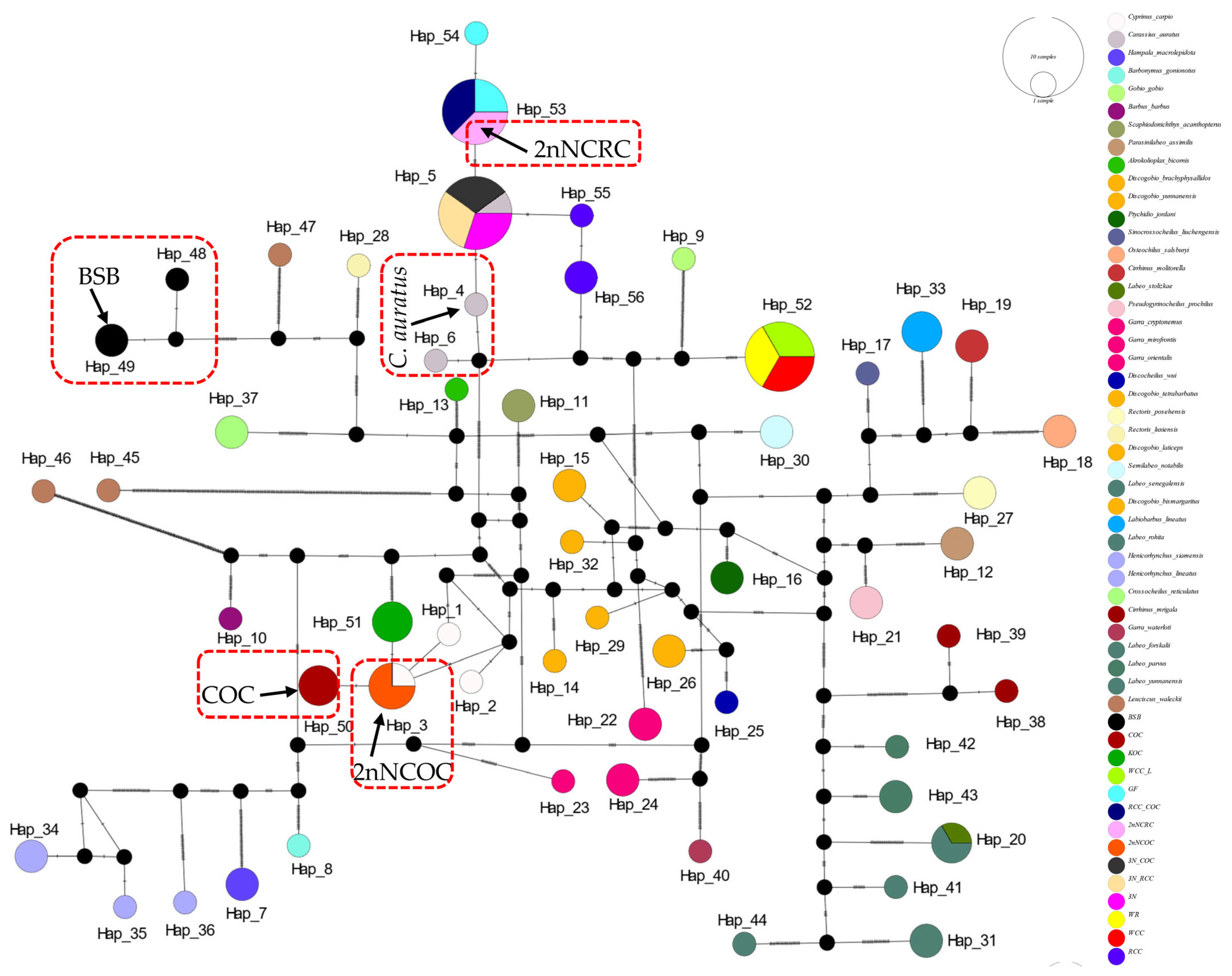 | Carassius cuvieri × Carassius auratus red var. | WR | WCC | RCC |