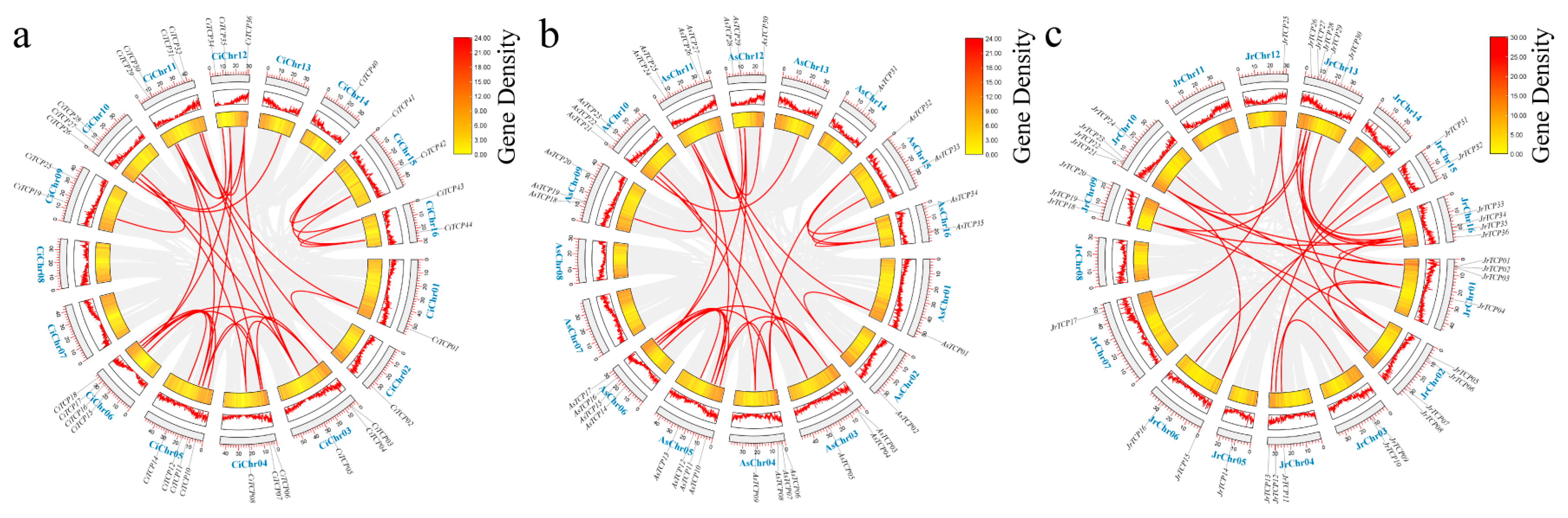 Sun, S.; Wu, X.; Liu, J.; Zhang, Y.; Shi, R.; Li, D. Genome-Wide Identification and Analysis of Fruit Expression Patterns of the TCP Gene Family in Three Genera of Juglandaceae. Biology 2025, 14, 1529. https://doi.org/10.3390/biology14111529