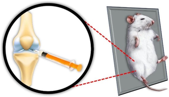 - Yamada, E.F.; Salgueiro, A.F.; Goulart, A.d.S.; Mendes, V.P.; Anjos, B.L.; Folmer, V.; da Silva, M.D. Evaluation of monosodium iodoacetate dosage to induce knee osteoarthritis: Relation with oxidative stress and pain. Int. J. Rheum. Dis. 2019, 22, 399–410. [Google Scholar] [CrossRef]
