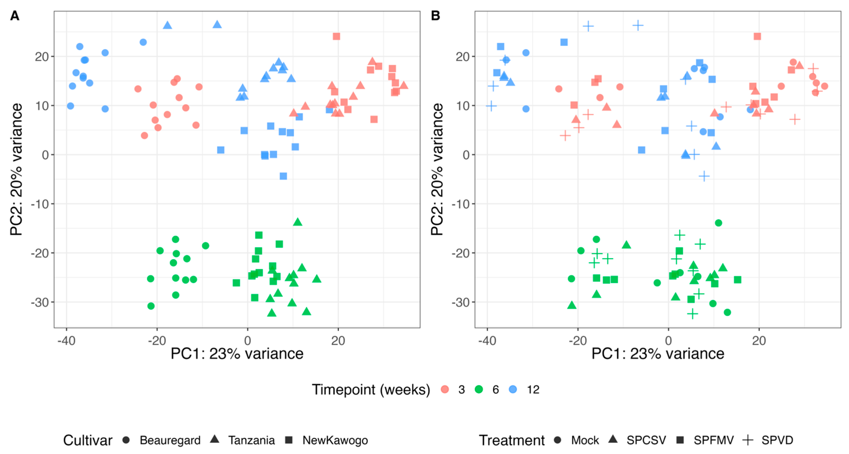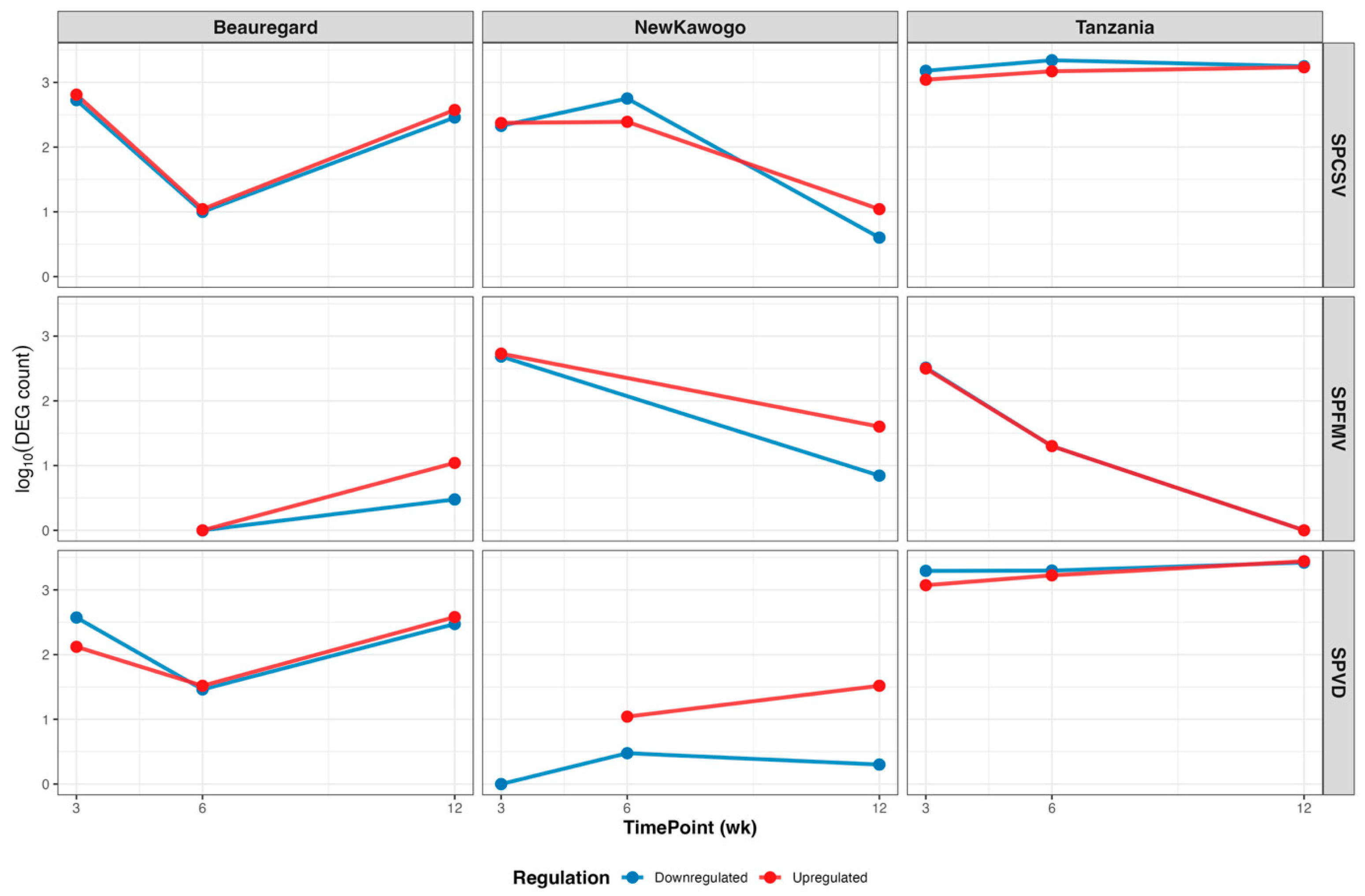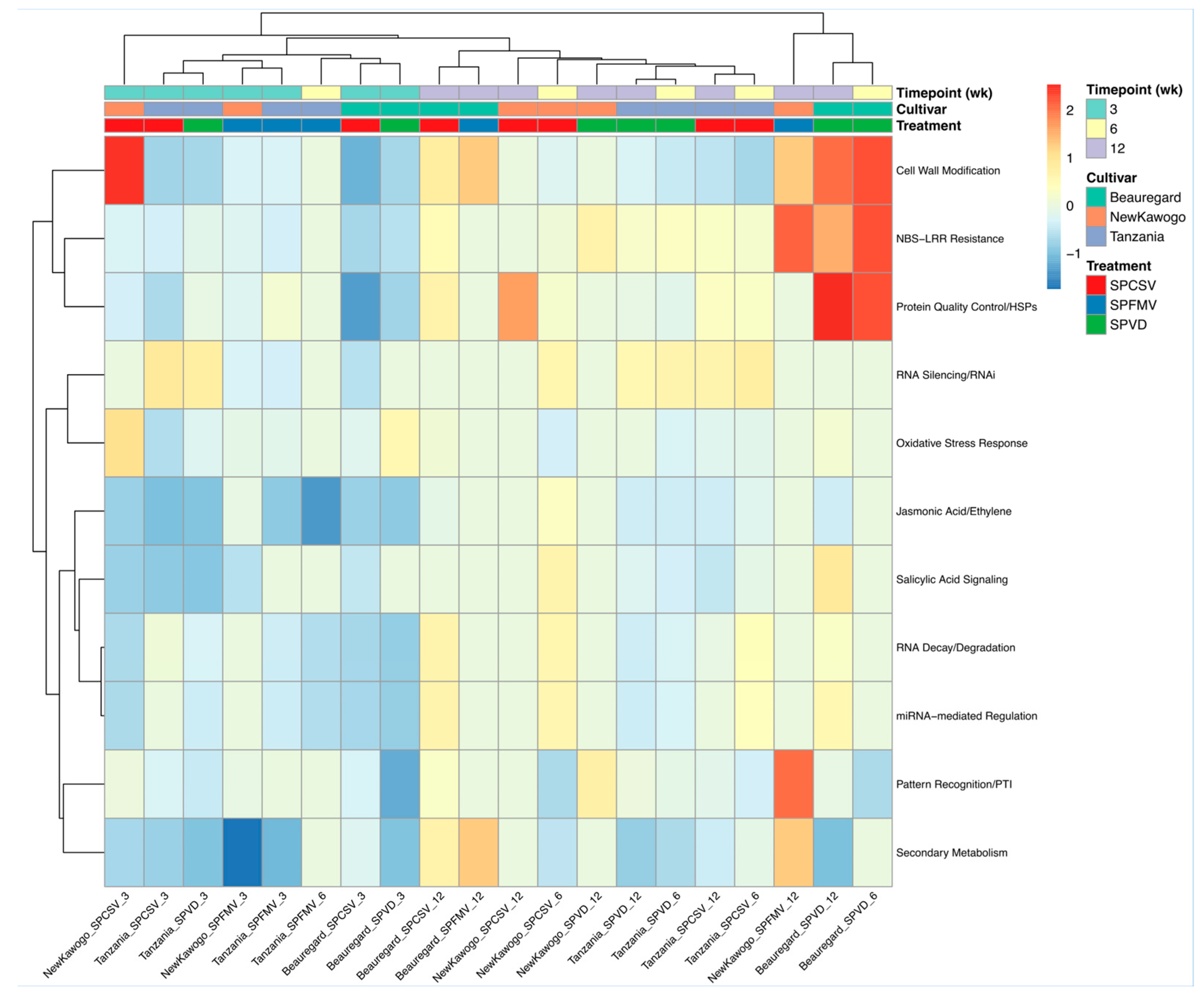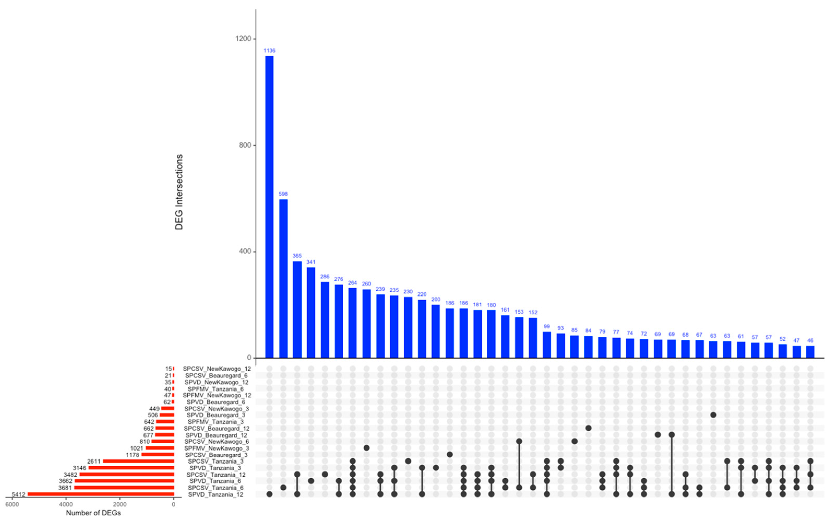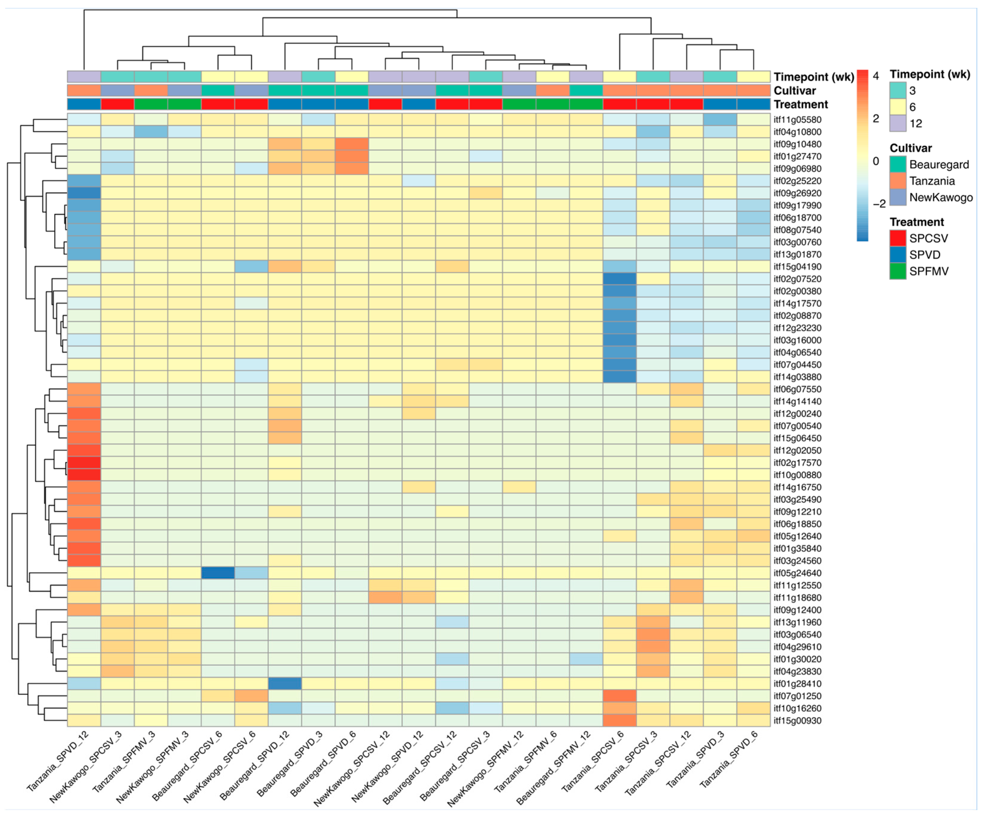 | 5 | Systemic acquired resistance (SAR) markers | 6 WPI | SPFMV/SPCSV | Long-range immune signaling | itf01g07140, itf12g22230 |