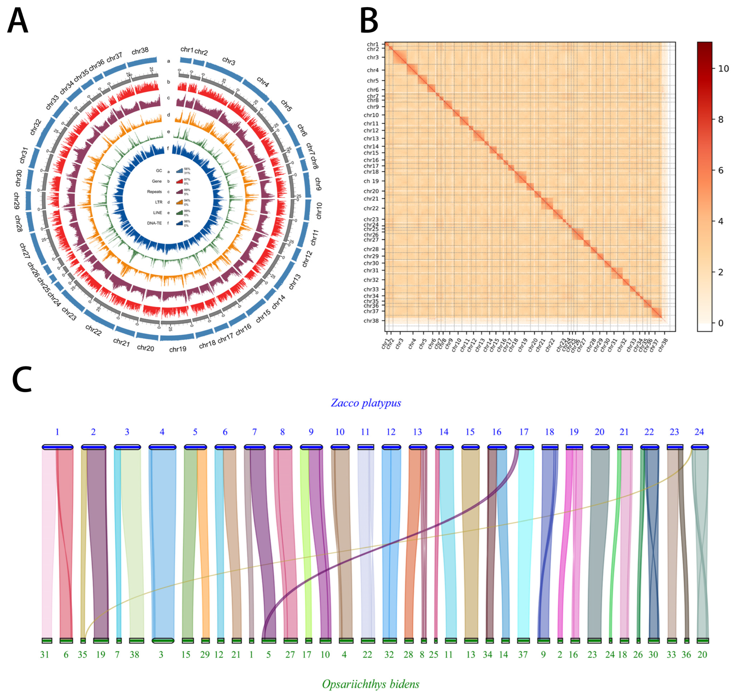 Chicago/Turabian StyleWang, Xinyue, Qi Liu, Denghua Yin, Pan Wang, Min Jiang, Jie Liu, Ning Sun, Yunzhi Yan, and Kai Liu. 2025. "Telomere-to-Telomere Gap-Free Genome Assembly and Comparative Analysis of the Opsariichthys bidens (Cypriniformes: Xenocyprididae)" Biology 14, no. 11: 1544. https://doi.org/10.3390/biology14111544