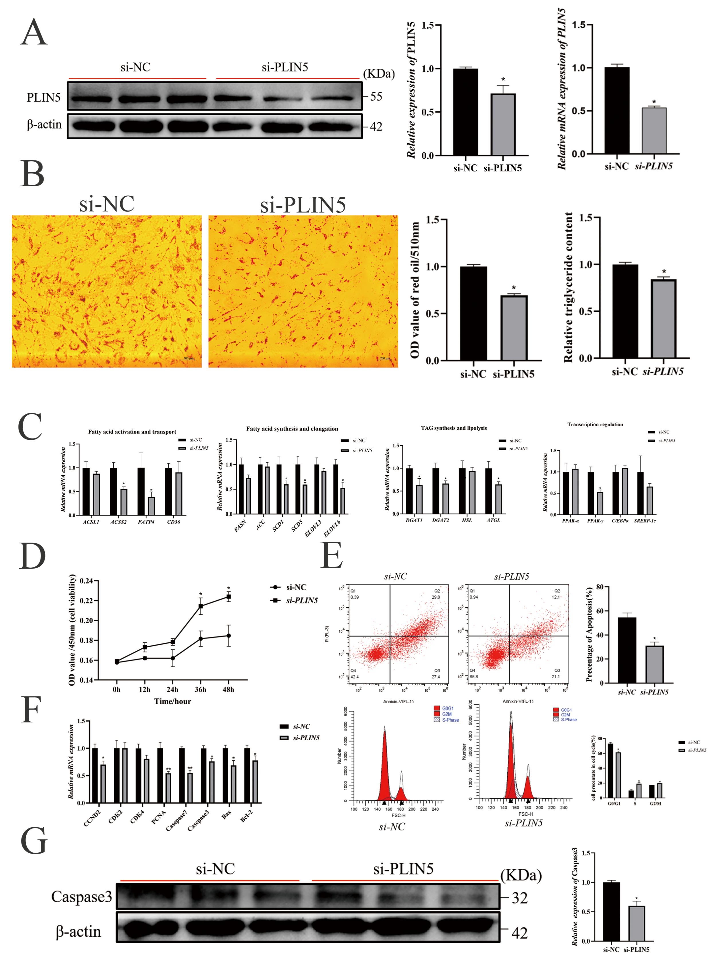 3.3. Knockdown of PLIN5 Inhibits Adipogenesis and Promotes Proliferation of Goat Intramuscular Preadipocytes