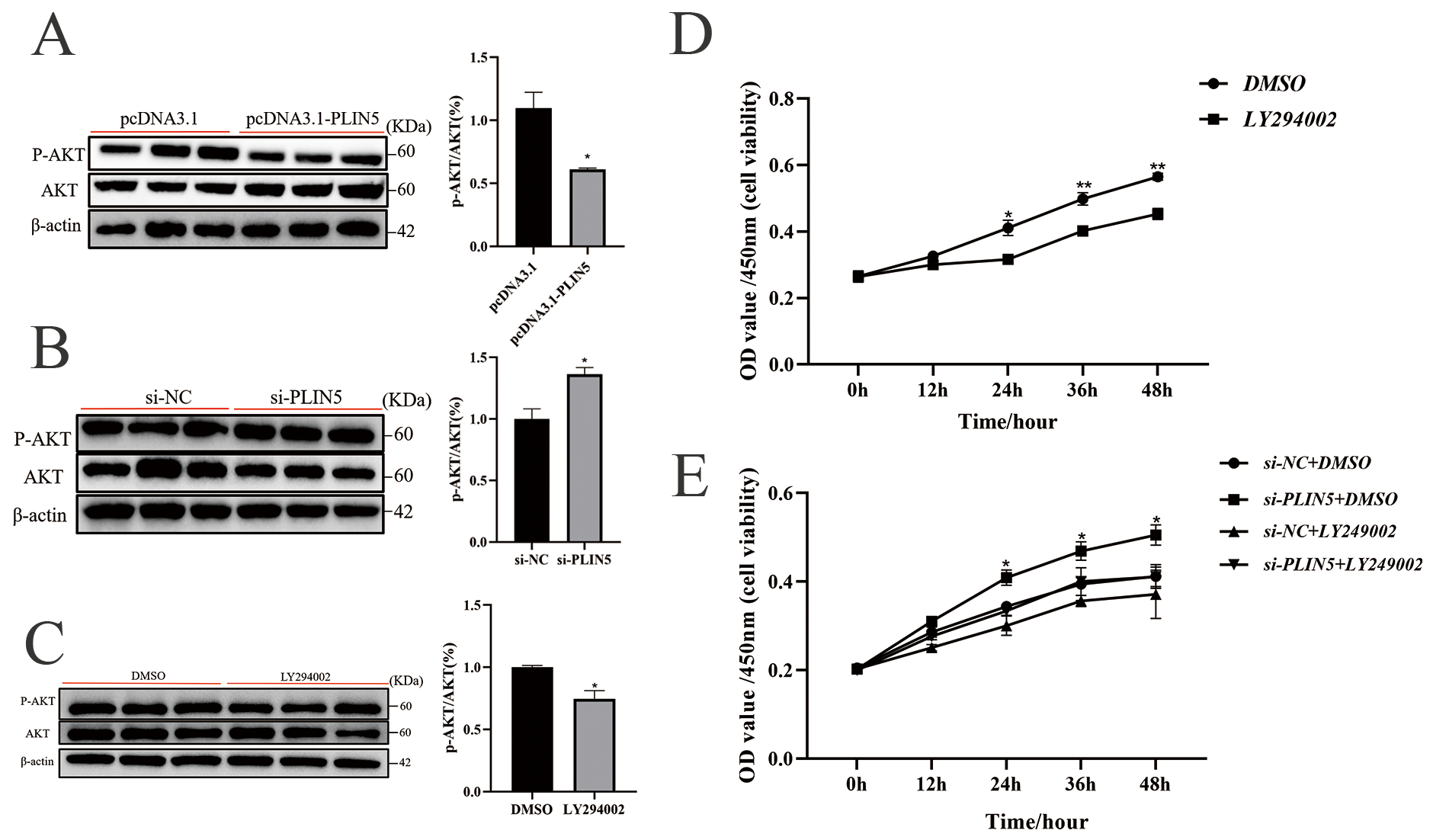 3.5. PLIN5 Inhibits Cell Proliferation by Suppressing the PI3K-AKT Signaling Pathway