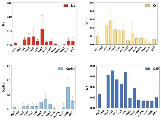 3.3. Variation in Mitogenome PCGs