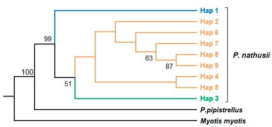 - Hulva, P.; Fornůsková, A.; Chudárková, A.; Evin, A.; Allegrini, B.; Benda, P.; Bryja, J. Mechanisms of radiation in a bat group from the genus Pipistrellus inferred by phylogeography, demography and population genetics. Mol. Ecol. 2010, 19, 5417–5431. [Google Scholar] [CrossRef] [PubMed]