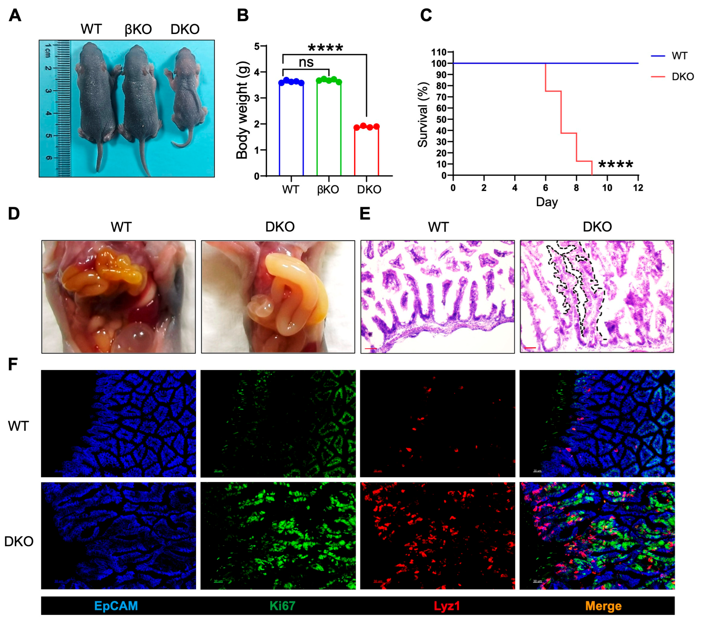 Chicago/Turabian StyleYang, Minggang, Xiaohui Li, Jiajia Zhan, Rui Pan, Ziye Yang, Mengsha Zhou, Lei Ma, and Chenfeng Liu. 2025. "Glycogen Synthase Kinase 3 Is Essential for Intestinal Cell Niche and Digestive Function" Biology 14, no. 11: 1551. https://doi.org/10.3390/biology14111551