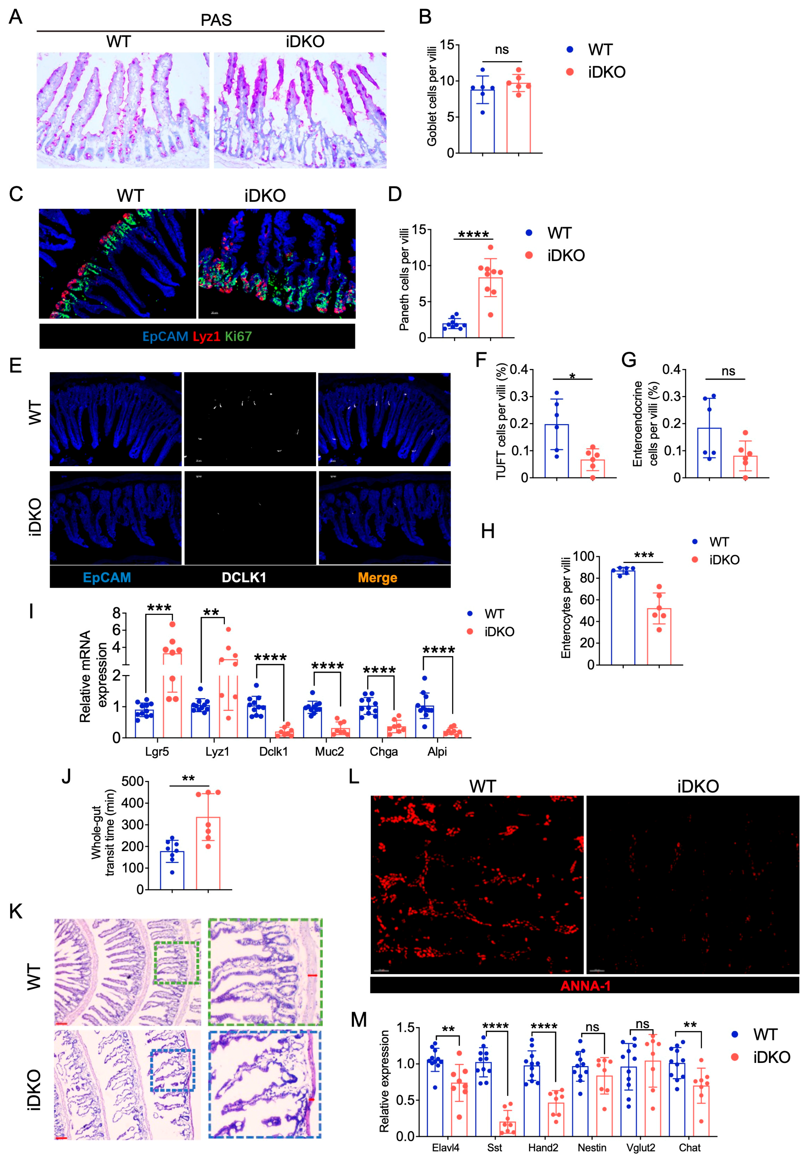 3.5. GSK3 Deficiency Affects the Intestinal Cell Niche and Absorptive and Peristaltic Function