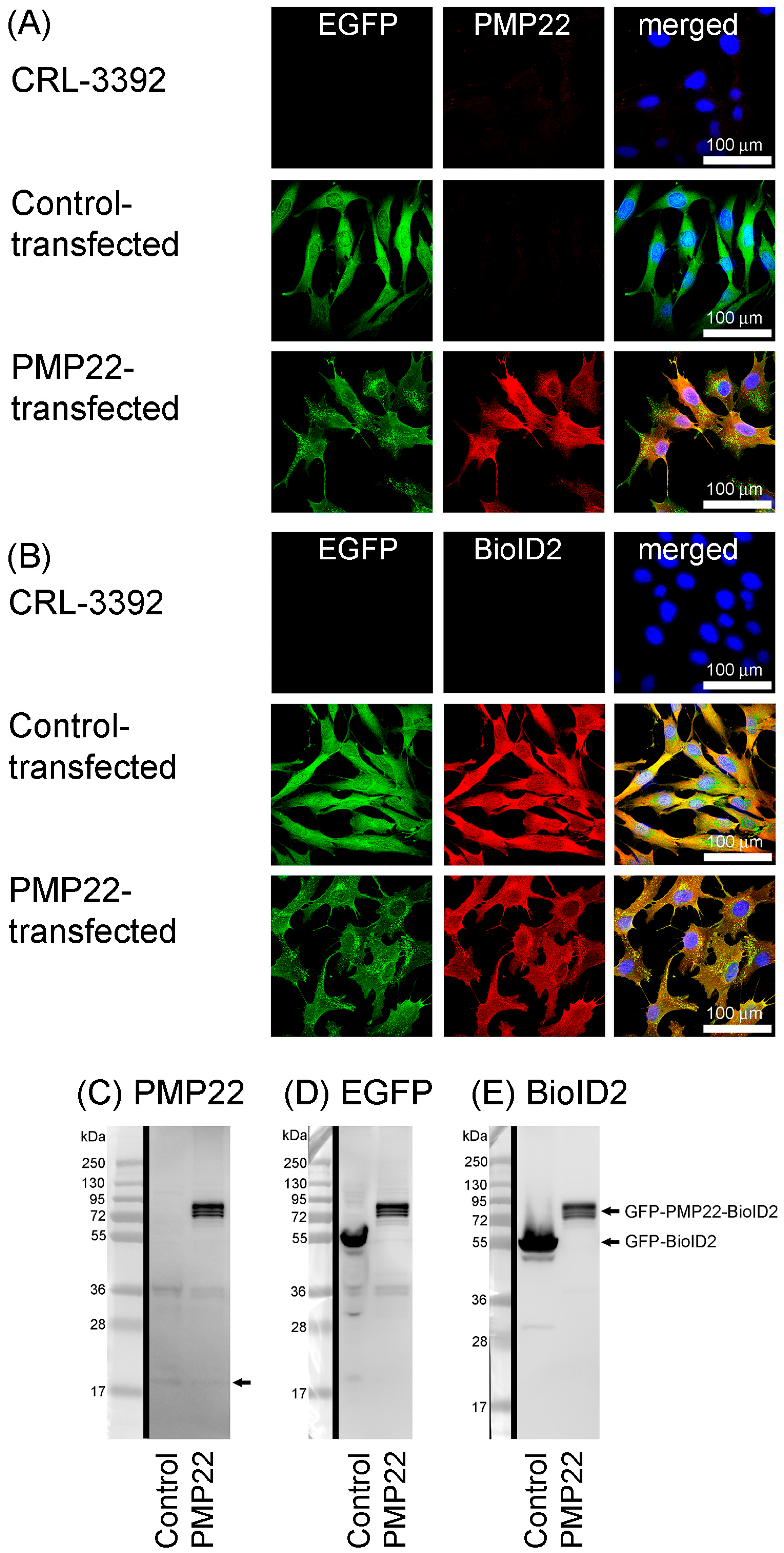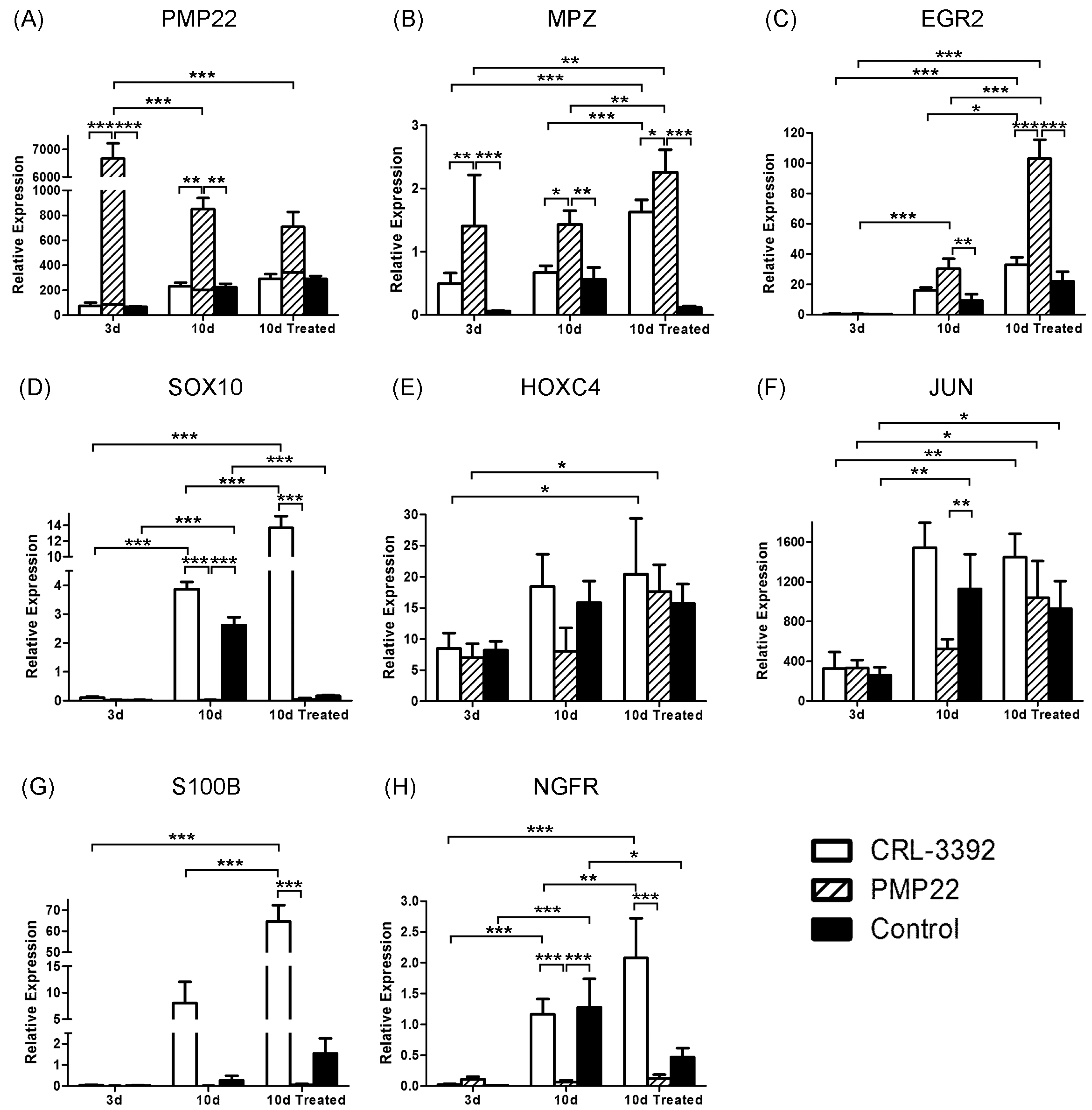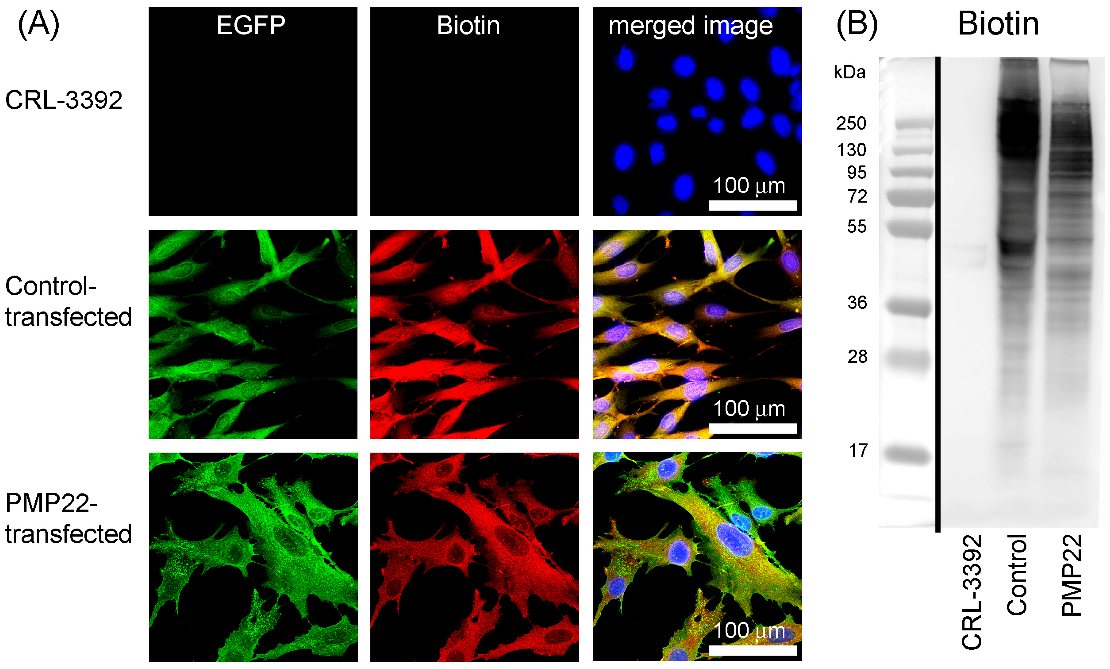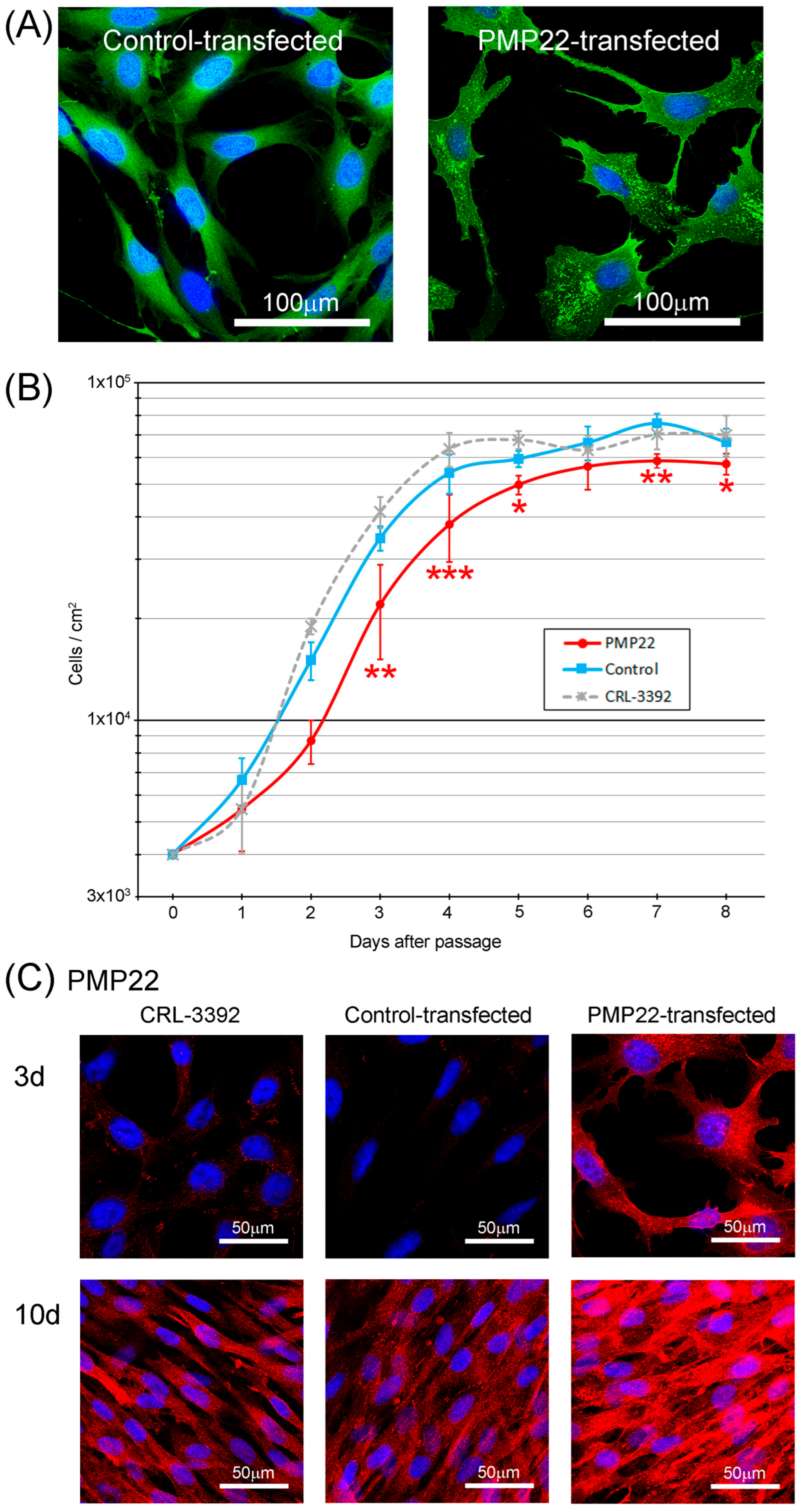 | PMP22-transfected | 30.7 | 22,000± 6866 (*) c | 696 ± 108 (***) d | 13.6 ± 10.7 (***) f |