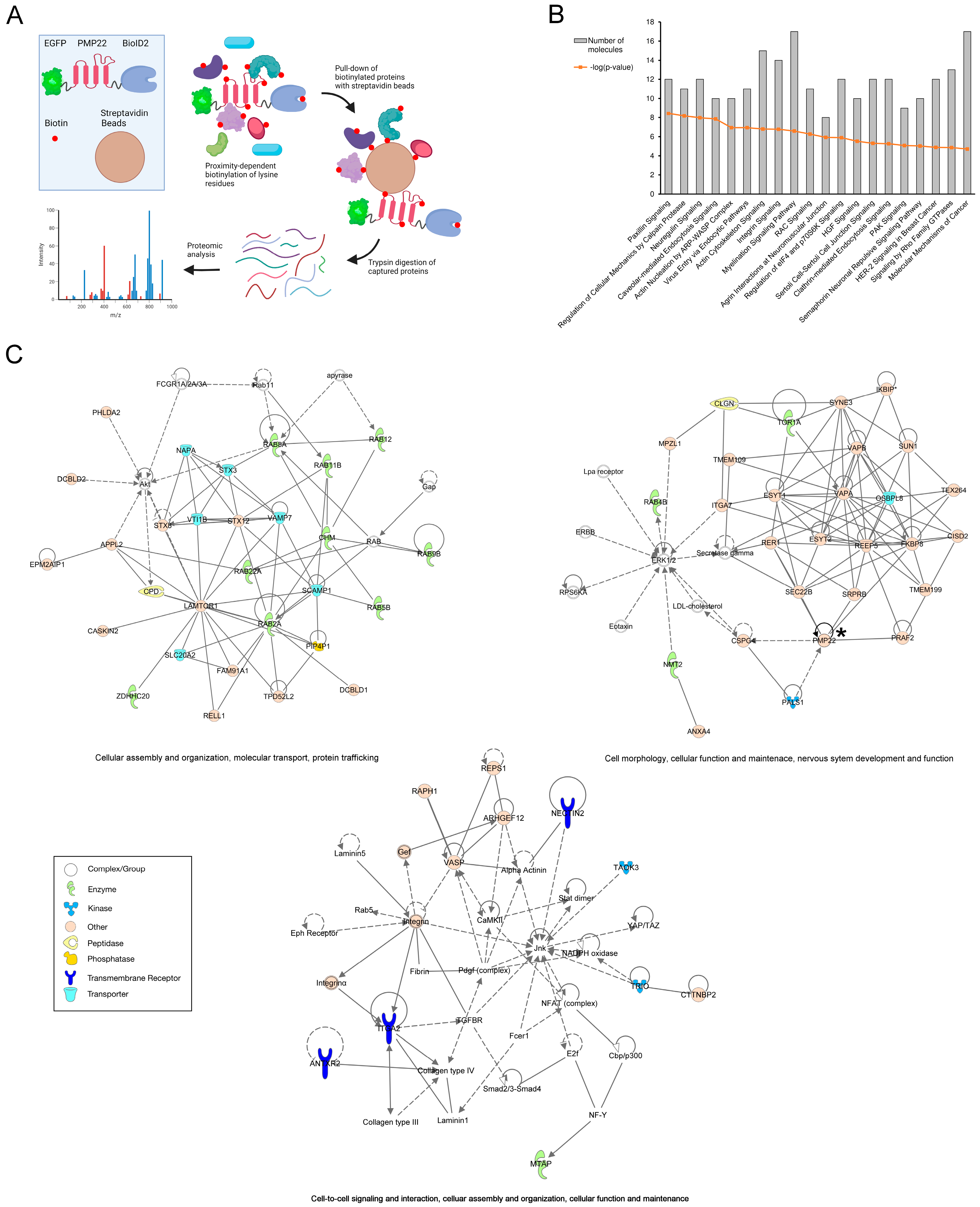 3.4. BioID2 Identification of PMP22-Associated Proteins in the CMT1A Schwann Cell Model