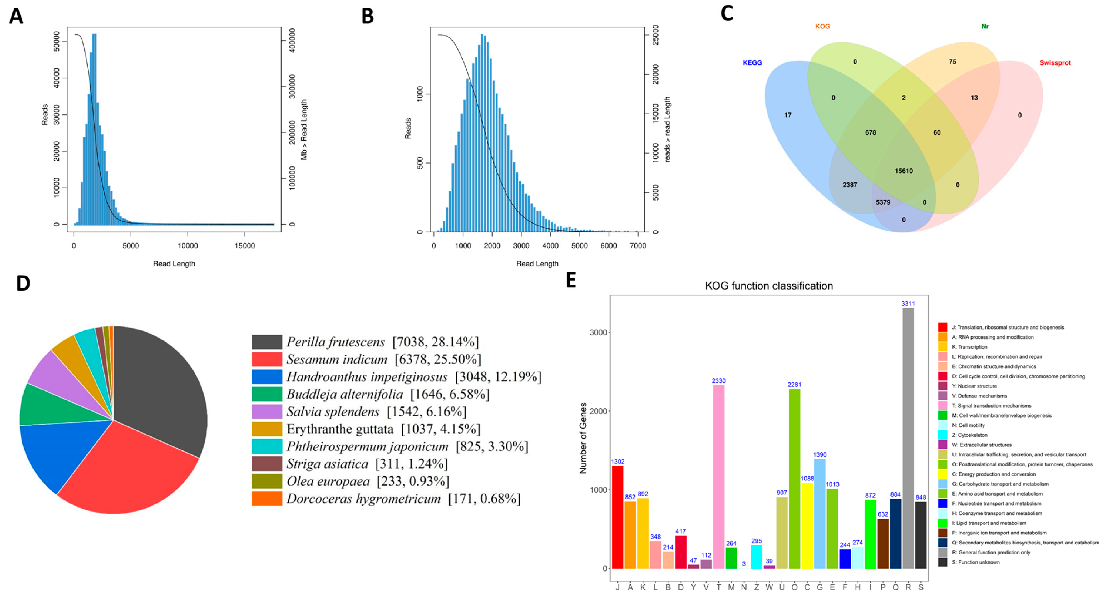3.1. General Characteristics and Functional Annotation of the Full-Length Transcriptome in Leaves of L. rotata