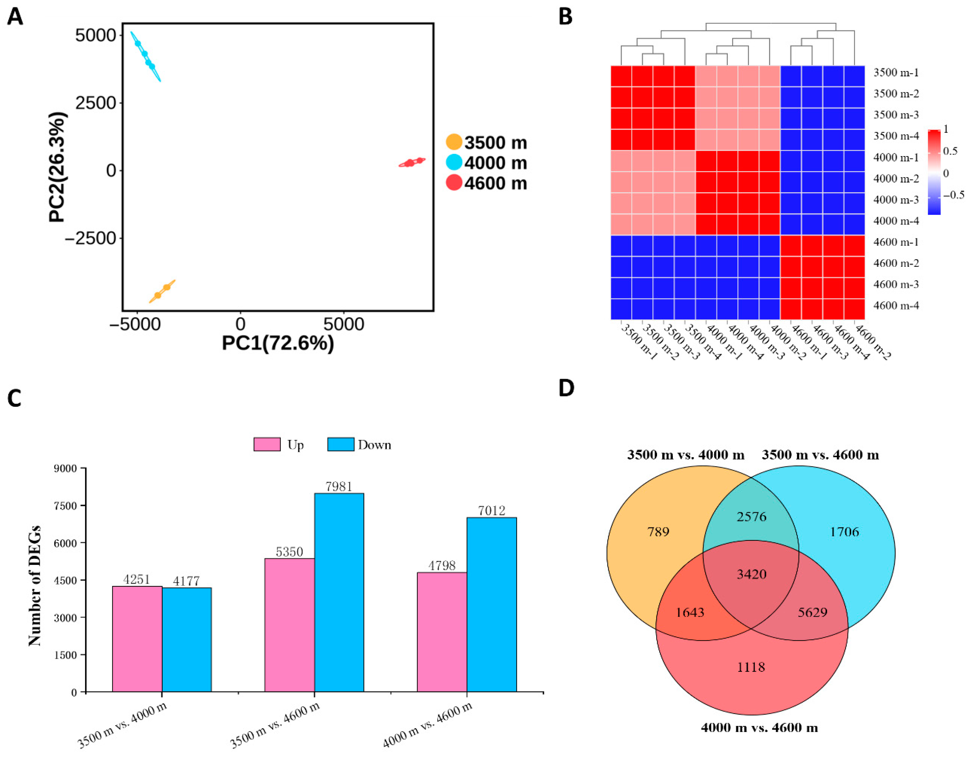 3.2. Evaluation of RNA-Seq Data and Identification of Ddifferentially Expressed Genes in Leaves of L. rotata Across Altitudinal Gradients