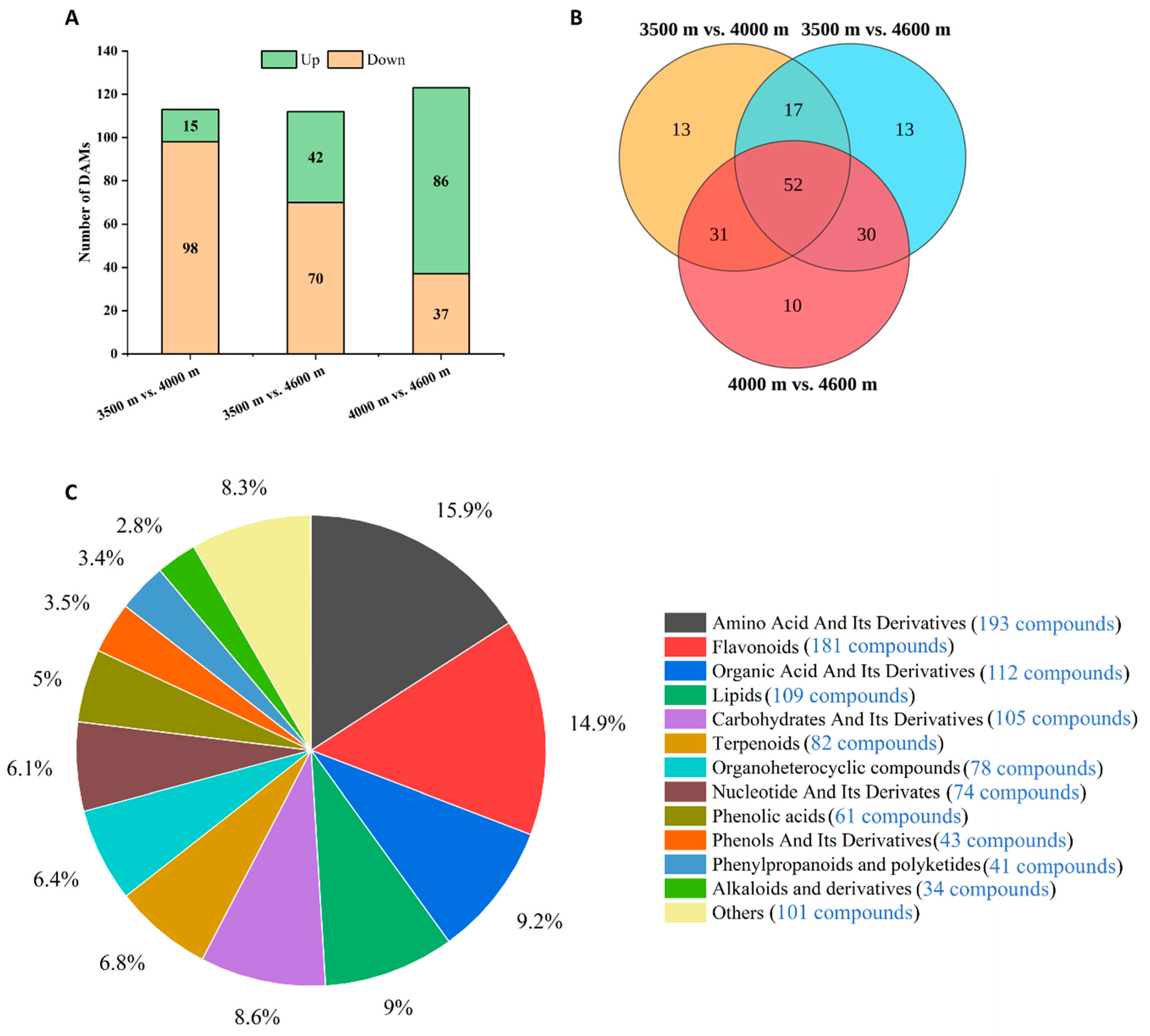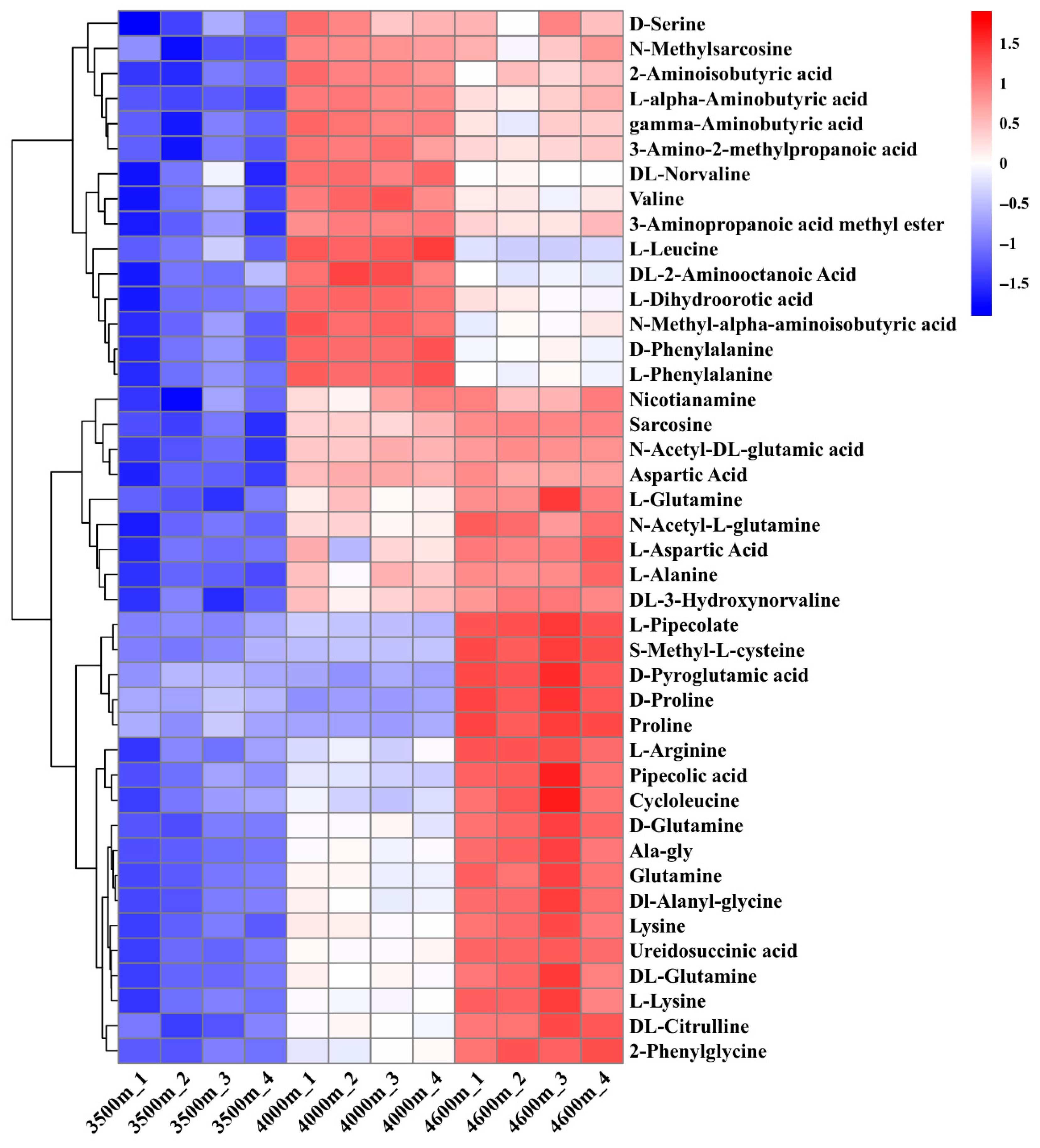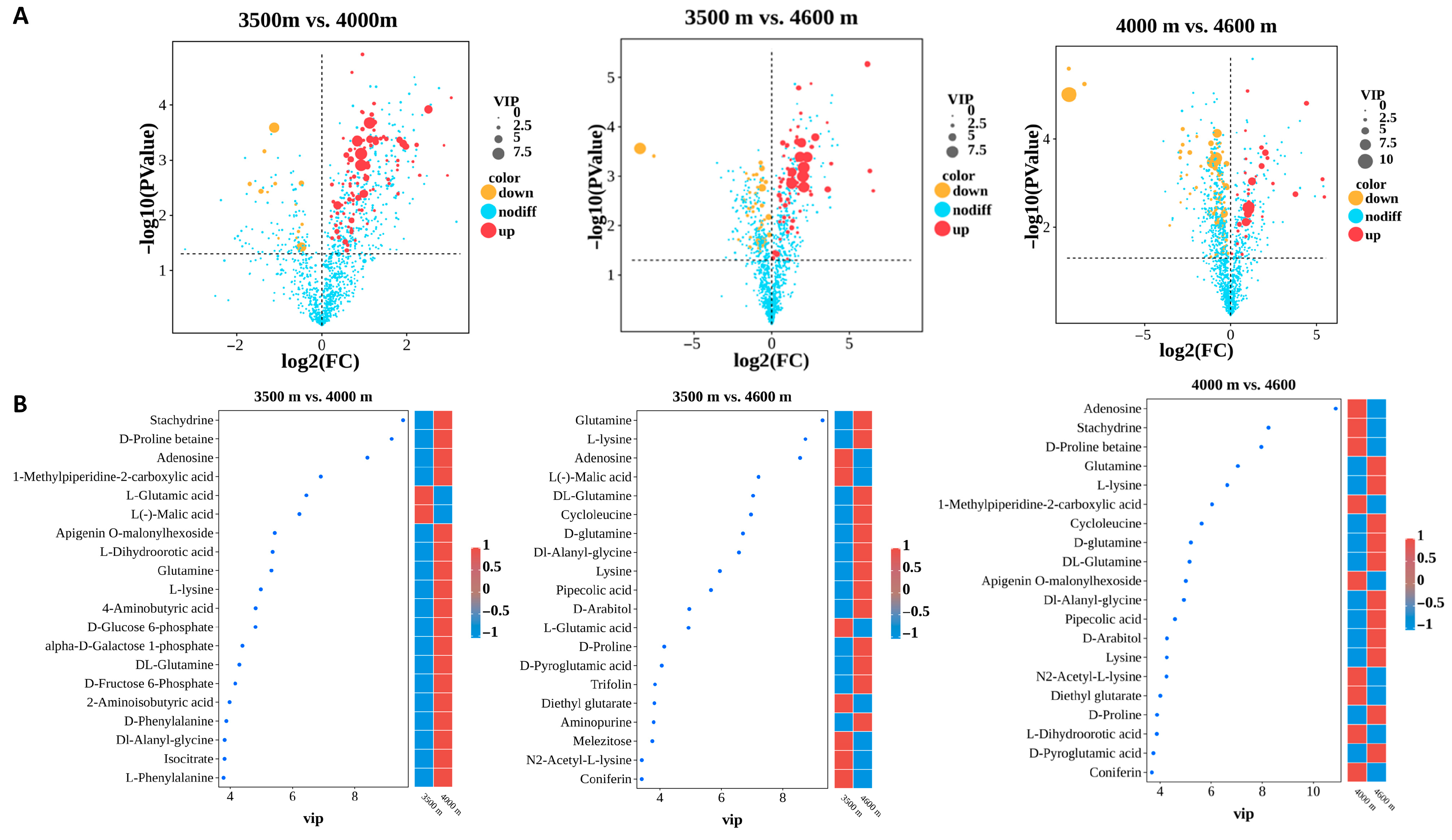 3.5. The Accumulation of the Majority of Amino Acids and Their Derivatives Among the Differential Metabolites Increases as the Altitude Ascends