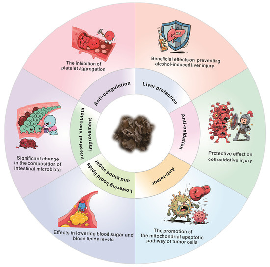Despite these advancements, the specific structures and mechanisms of action of many active components within A. auricula remain to be fully elucidated. Thus, multidisciplinary research endeavors are essential to comprehensively explore its potential in the synthesis of novel functional materials, innovative pharmaceuticals, and functional foods.