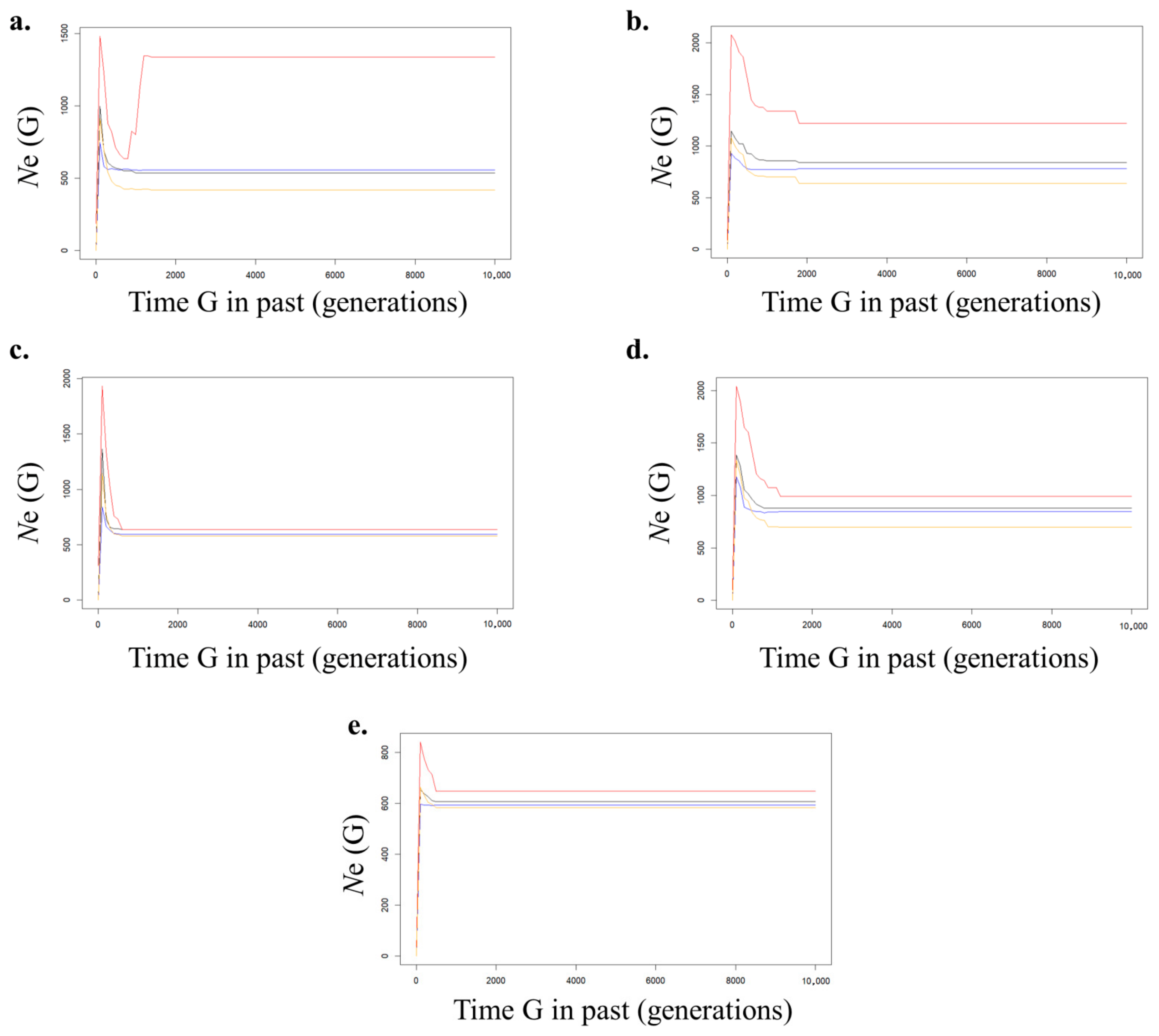 Ne is a key indicator of maintaining genetic diversity in a population and is therefore essential for establishing species conservation strategies [12,13]. Reconstructing past Ne fluctuations can help infer the impact of environmental factors such as climate change on populations, while current Ne provides important baseline data for assessing population health and establishing practical management plans [13,14,15].