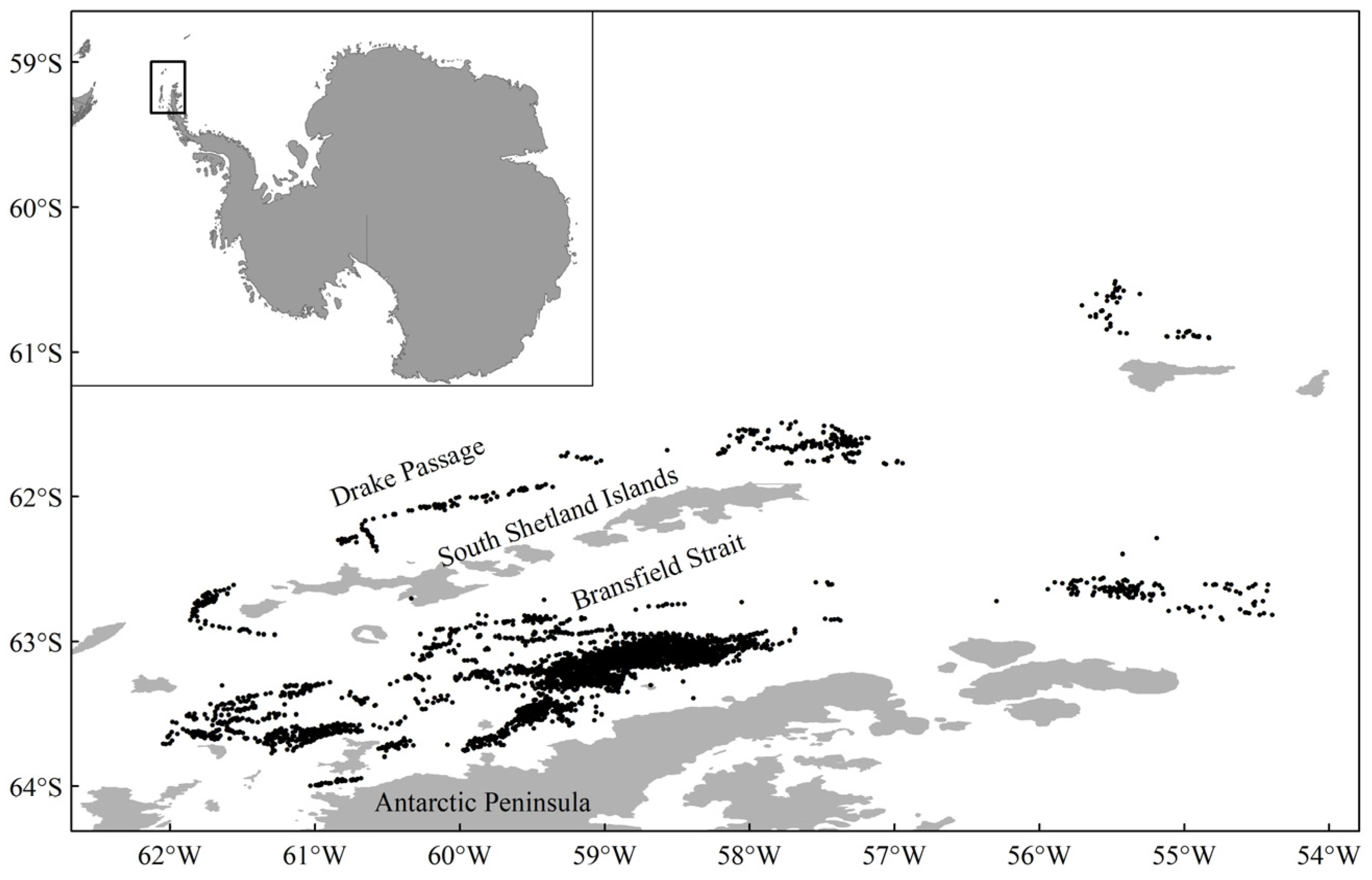 62. Gordey, A.S.; Frey, D.I.; Drozd, I.D.; Krechik, V.A.; Smirnova, D.A.; Gladyshev, S.V.; Morozov, E.G. Spatial variability of water mass transports in the Bransfield Strait based on direct current measurements. Deep-Sea Res. I Oceanogr. Res. Pap. 2024, 207, 104284. [Google Scholar] [CrossRef]