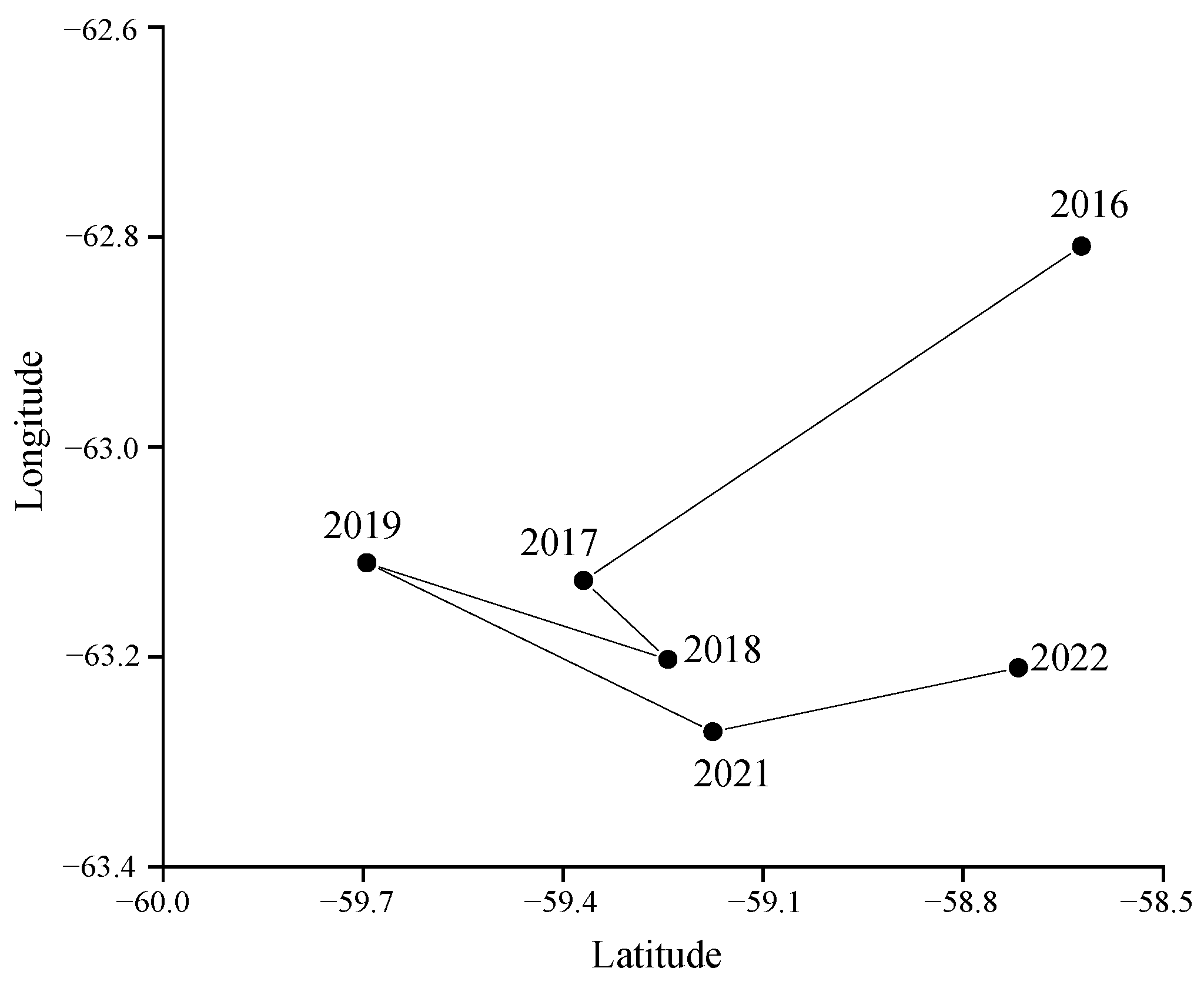 64. Sylvester, Z.T.; Long, M.; Brooks, C. Detecting climate signals in southern ocean krill growth habitat. Front. Mar. Sci. 2021, 8, 669508. [Google Scholar] [CrossRef]