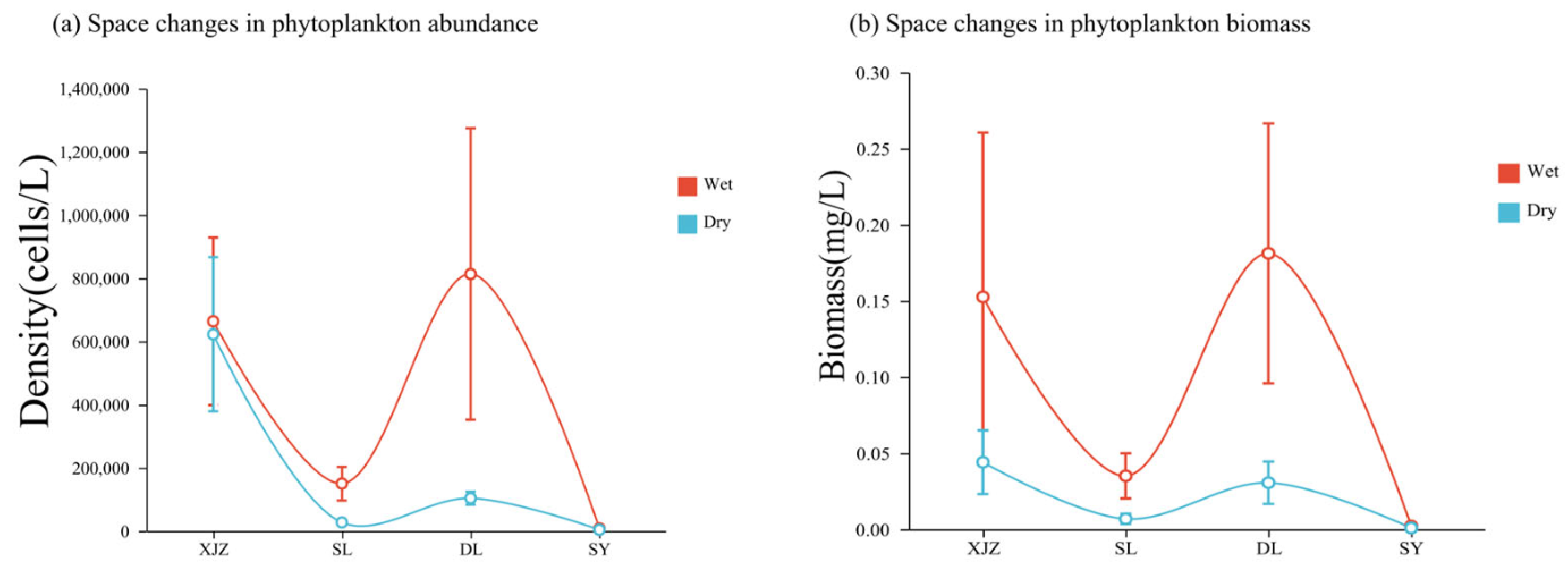 - Yang, Y.; Chen, Y.; Chen, Q. Greater niche overlap and species association of phytoplankton in dry season than in wet season in Wujiang River, Yungui Plateau, China. J. Oceanol. Limnol. 2025, 8, 1–13. [Google Scholar] [CrossRef]