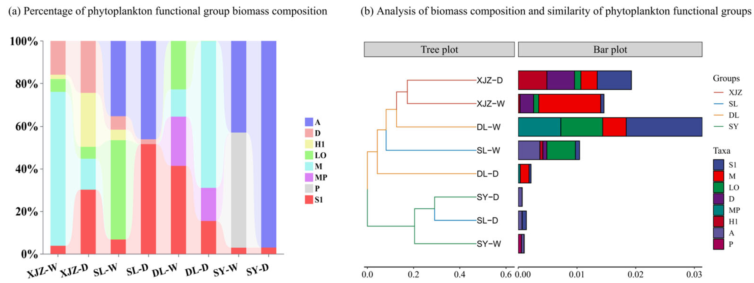 3.1. Composition of Functional Groups of Phytoplankton