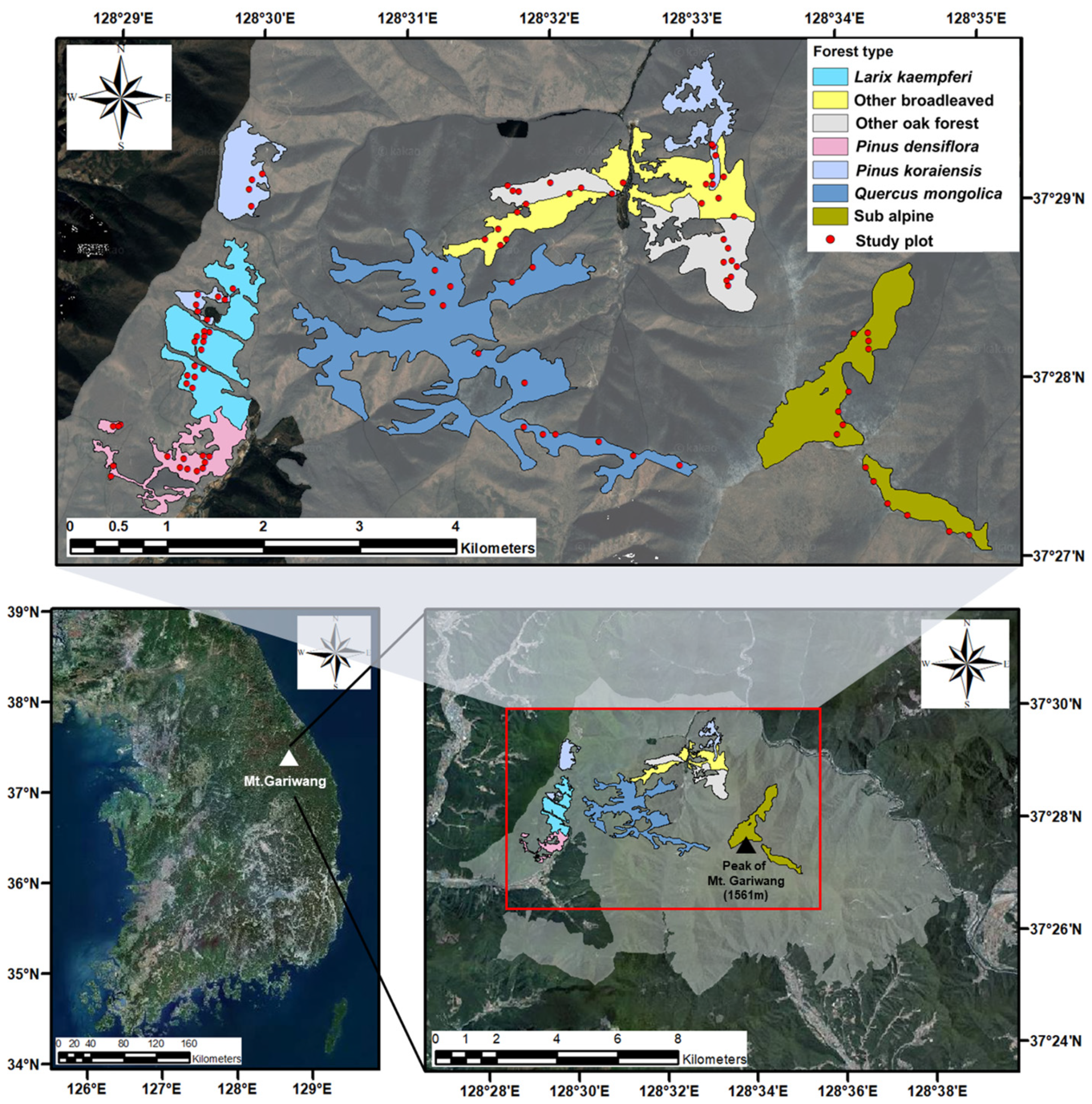 | Pinus densiflora forests | Overstory | Pinus densiflora Siebold & Zucc. | Quercus mongolica Fisch. ex Ledeb. |