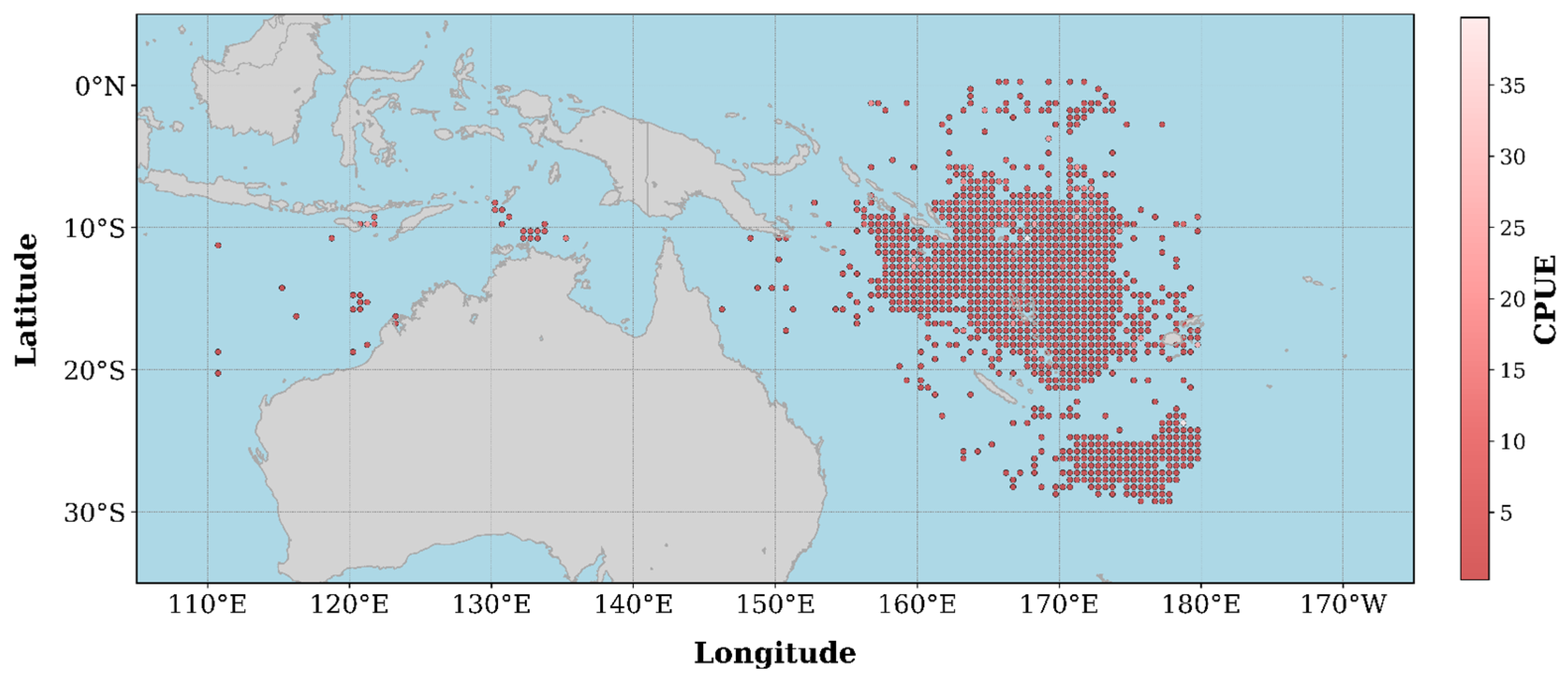 Figure 1. CPUE distribution in the western and central Pacific Ocean.