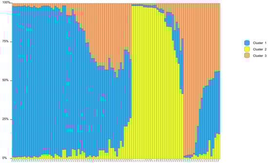 - Pritchard, J.K.; Stephens, M.; Donnelly, P. Inference of population structure using multilocus genotype data. Genetics 2000, 155, 945–959. [Google Scholar] [CrossRef]
