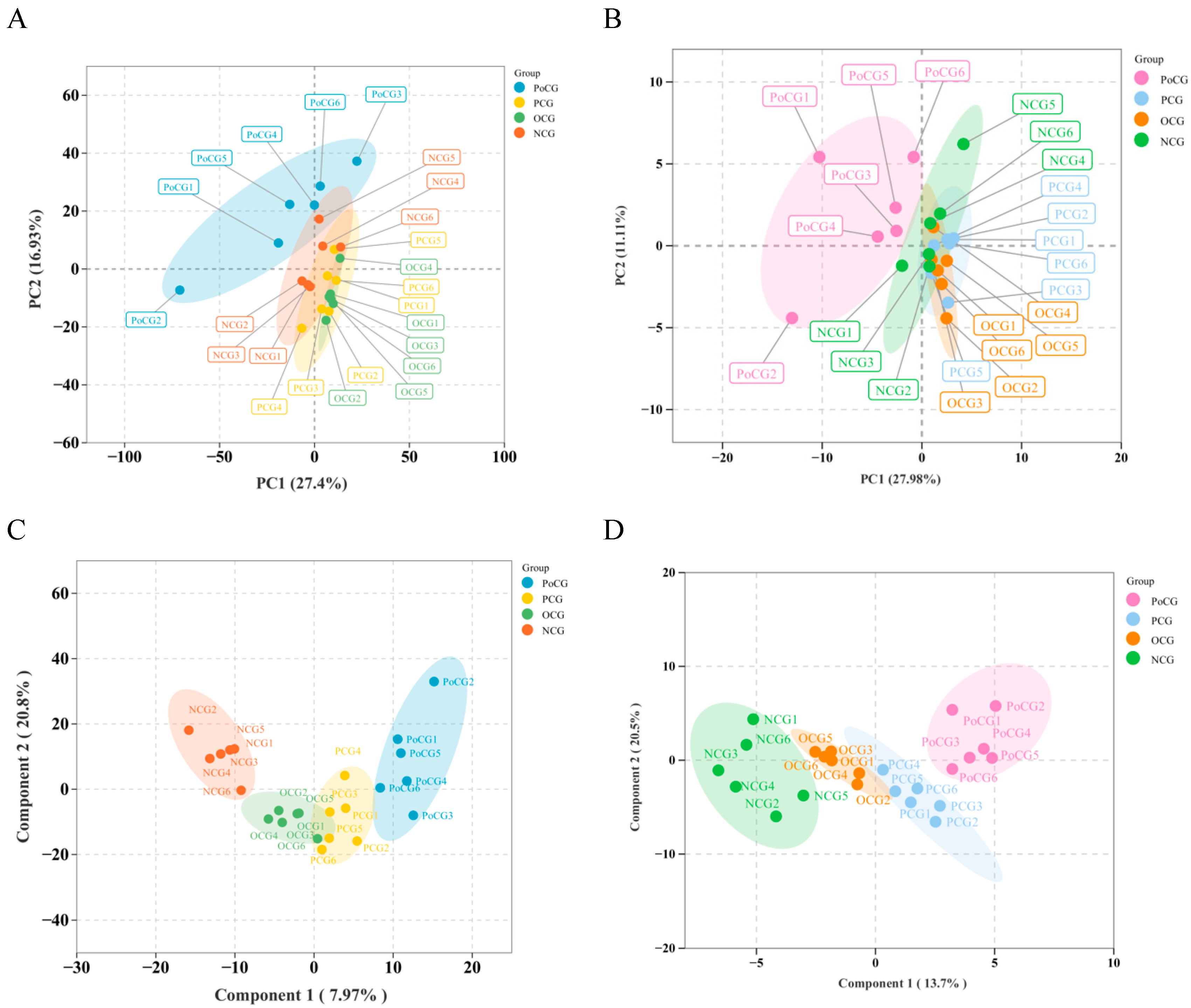 3.2. PCA and OPLS Analysis